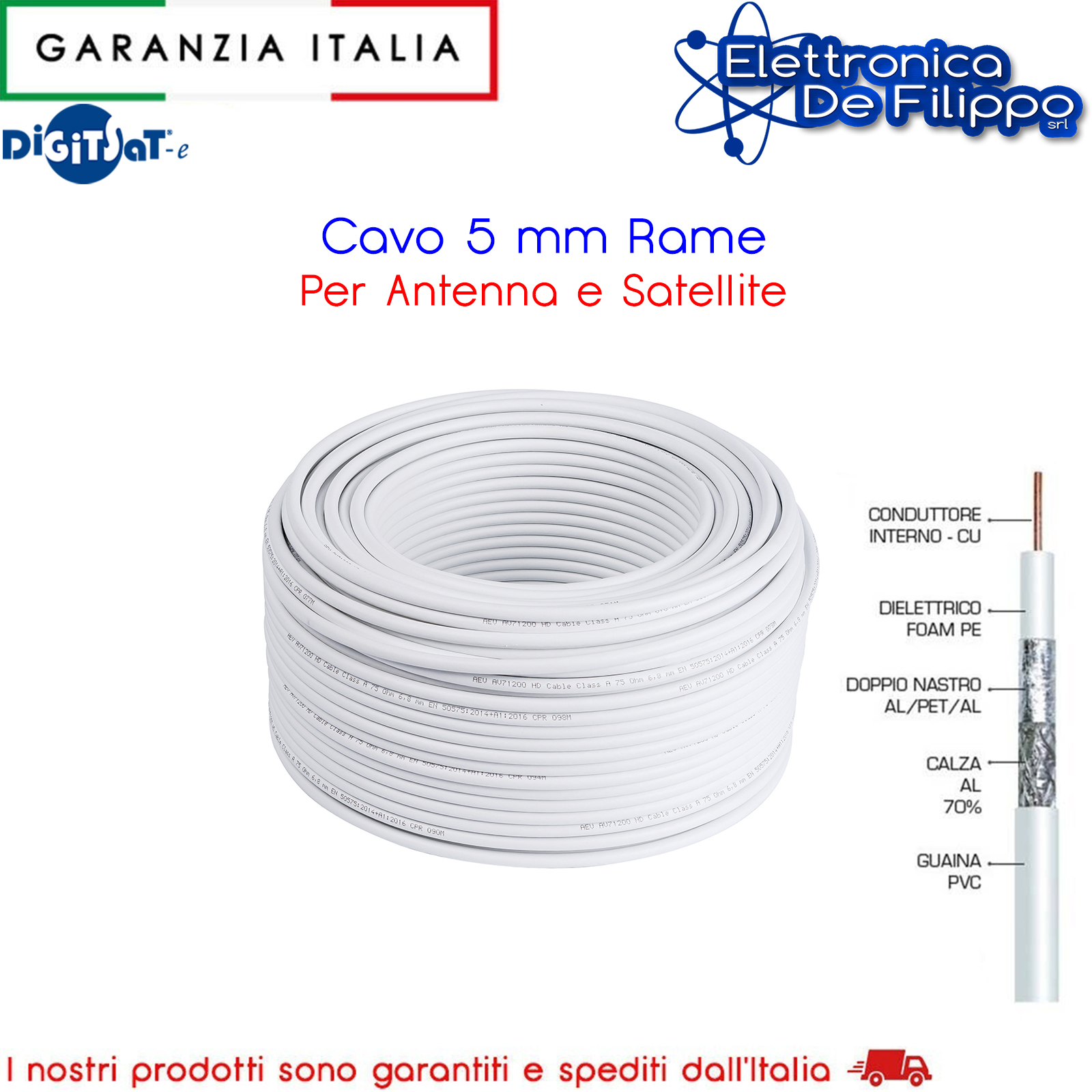 Cavo TV/SAT da 5 mm con conduttore in rame ottimo per impianti centralizzati o privati