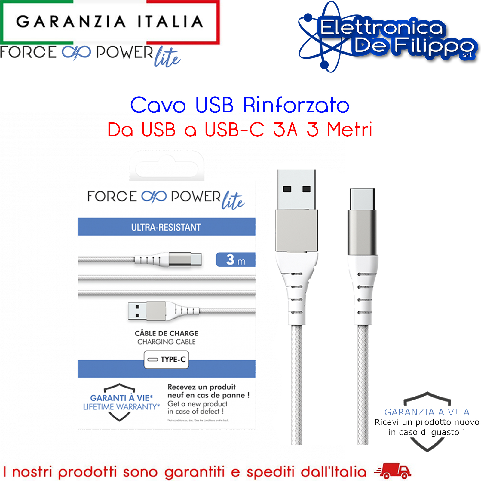 Grazie alla garanzia a vita, Force Power sostituisce il tuo prodotto con un semplice cambio con uno nuovo nel caso in cui venga danneggiato.