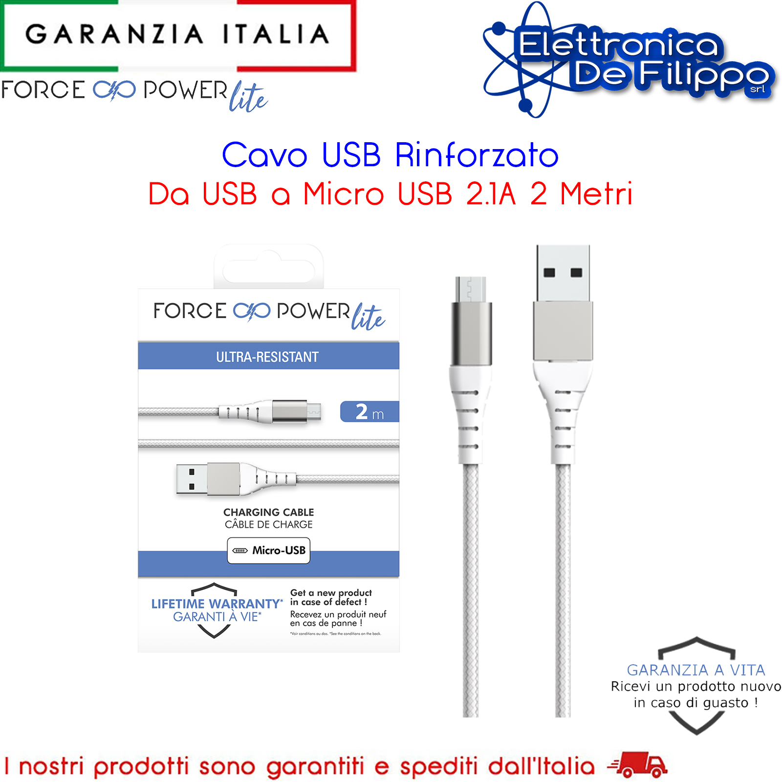 - Contenuto della confezione: 1 cavo USB A/micro USB da 2 m + Garanzia a vita