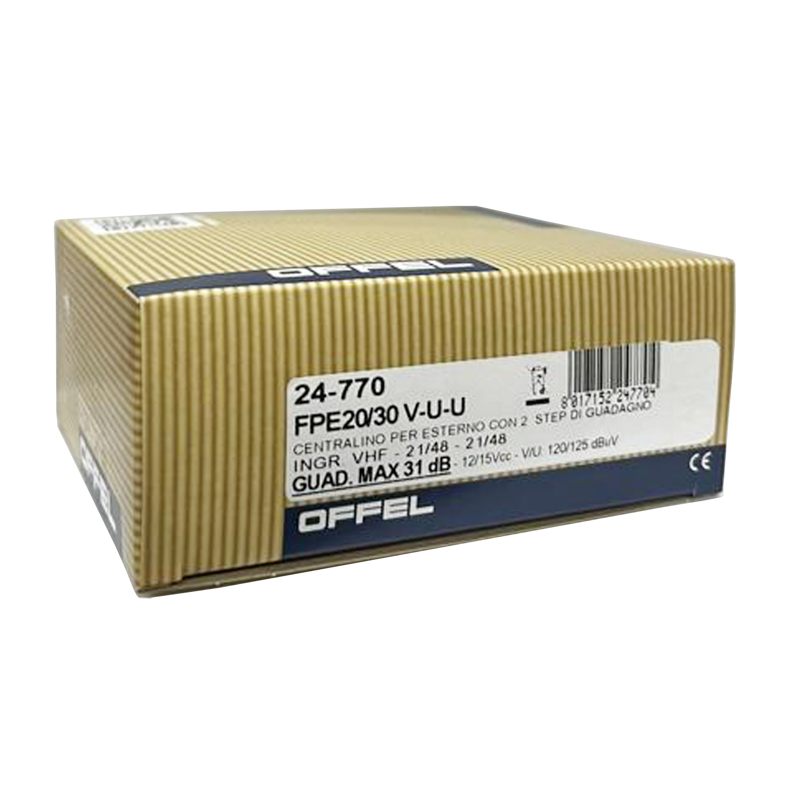 Centralino larga banda per esterno, adatto per impianti di ricezione di medie dimensioni. Progettato per ottimizzare l'amplificazione dei segnali DTT compresi nel range E05÷E12+E21÷E48, attenuando la banda 700 MHz senza precludere il buon funzionamento del canale E48. Ideale per adattarsi a diverse soluzioni di impianto grazie ad un selettore a due step che consente di impostare il guadagno massimo su tutta la banda UHF a 20 o 30 dB. La banda VHF, invece, ha guadagno massimo 30 dB.