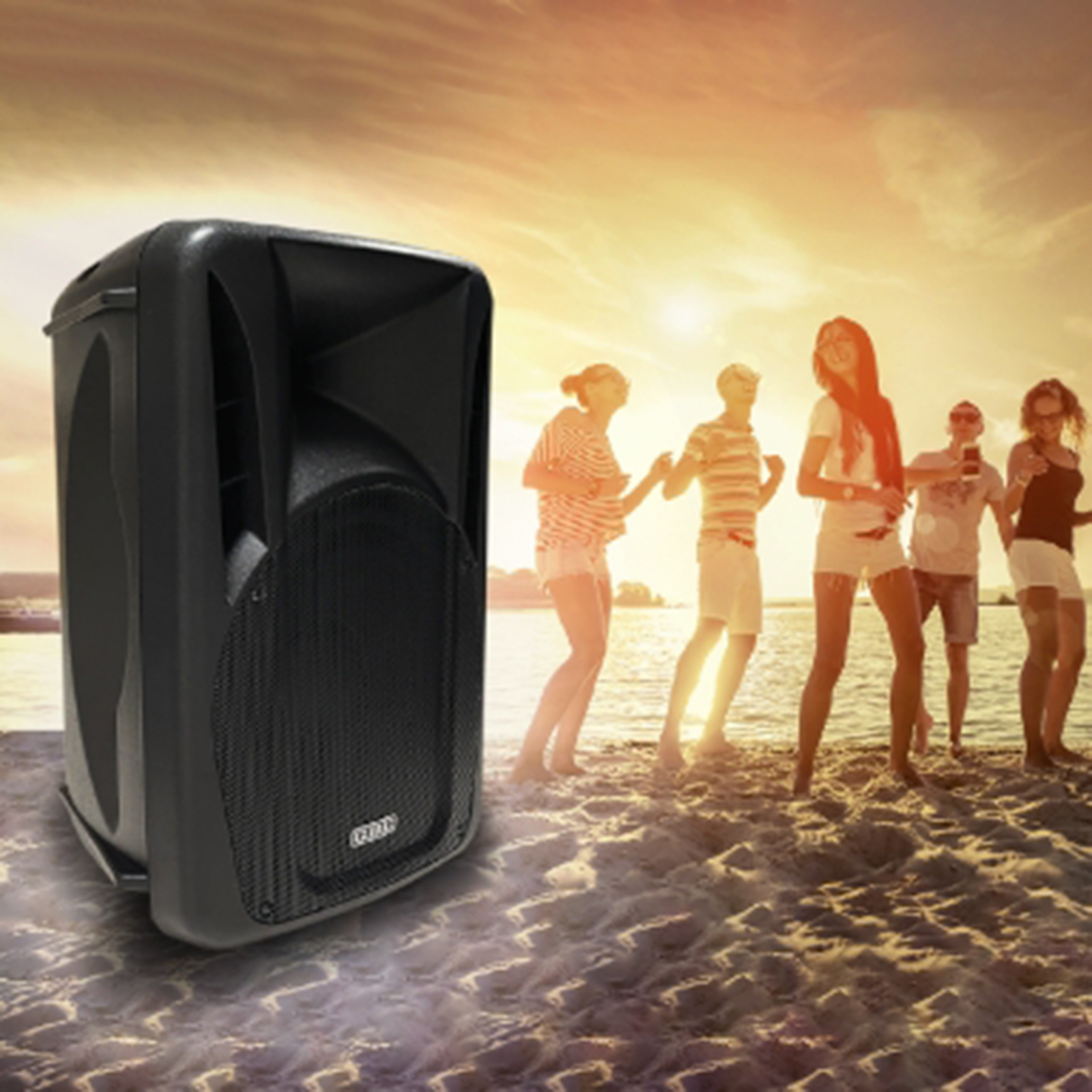 Diffusore amplificato 300W a 2 vie, con Bluetooth integrato per la riproduzione audio in streaming da PC, Smartphone e Tablet. Presa USB ed SD per la lettura dei file MP3. Semplice da trasportare grazie al trolley incorporato, resistente e compatto, ideale per feste ed intrattenimento