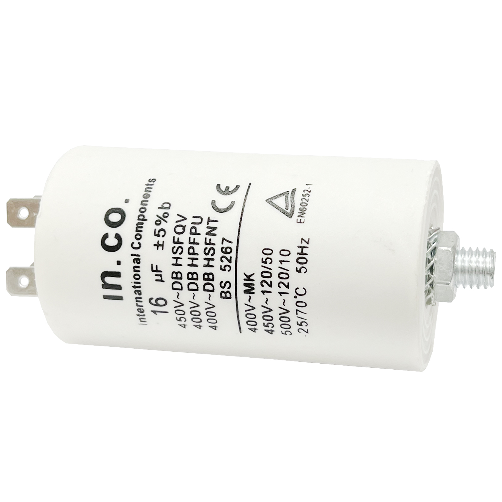 Il condensatore di avviamento da 16 microfarad è progettato per migliorare il rendimento e l'avvio di motori elettrici monofase, come quelli utilizzati in elettrodomestici come lavatrici, condizionatori d'aria e attrezzature industriali leggere.