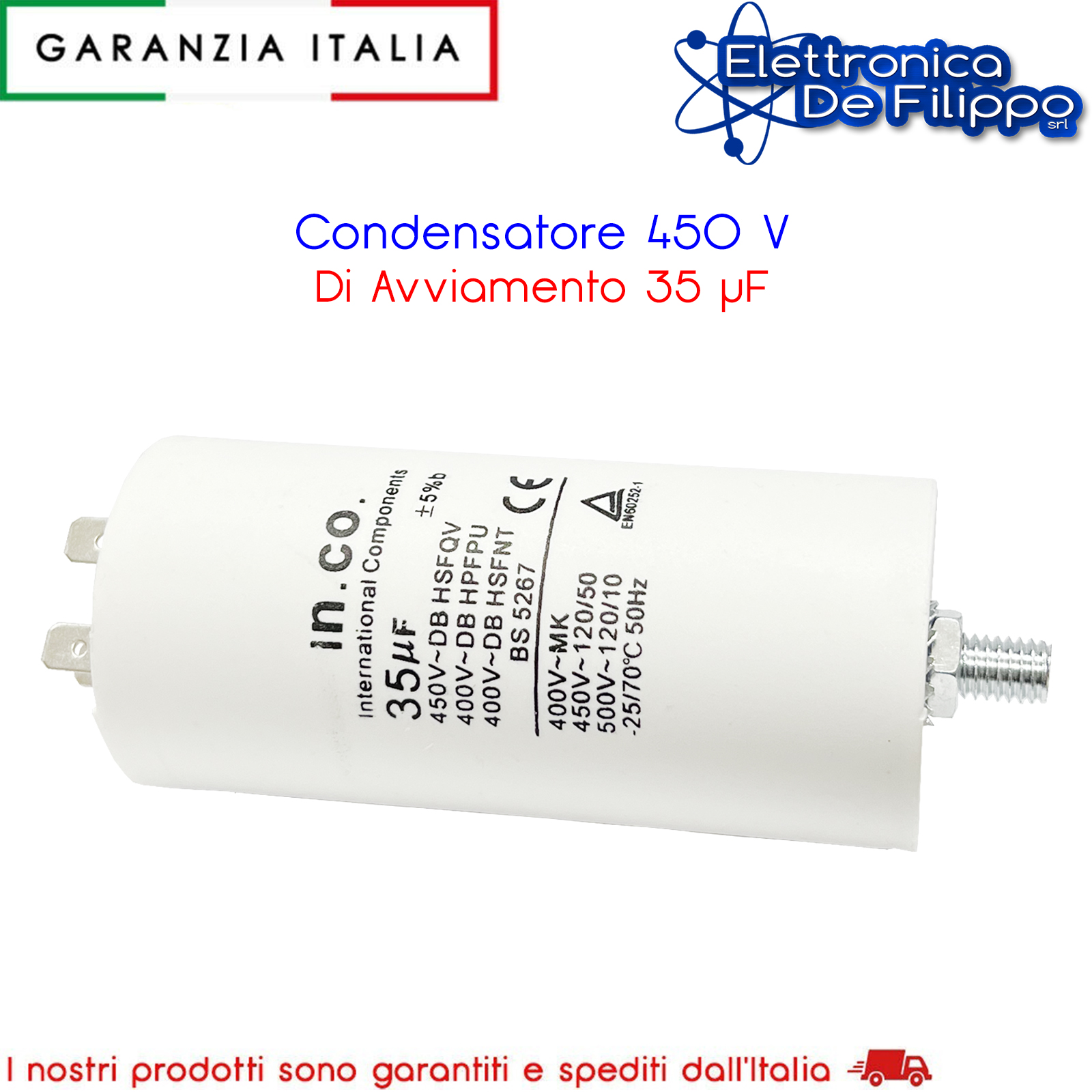Il condensatore di avviamento da 35 microfarad è progettato per migliorare il rendimento e l'avvio di motori elettrici monofase, come quelli utilizzati in elettrodomestici come lavatrici, condizionatori d'aria e attrezzature industriali leggere.