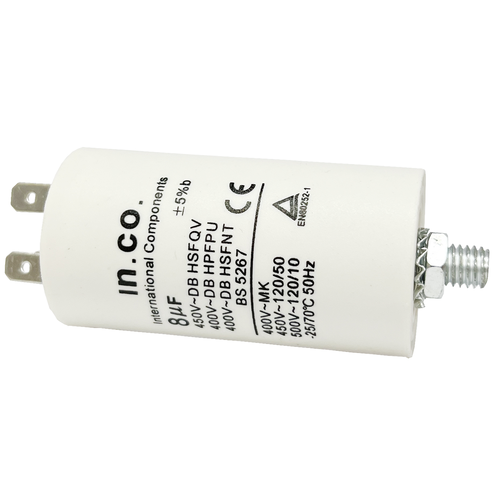 Il condensatore di avviamento da 8 microfarad è progettato per migliorare il rendimento e l'avvio di motori elettrici monofase, come quelli utilizzati in elettrodomestici come lavatrici, condizionatori d'aria e attrezzature industriali leggere.