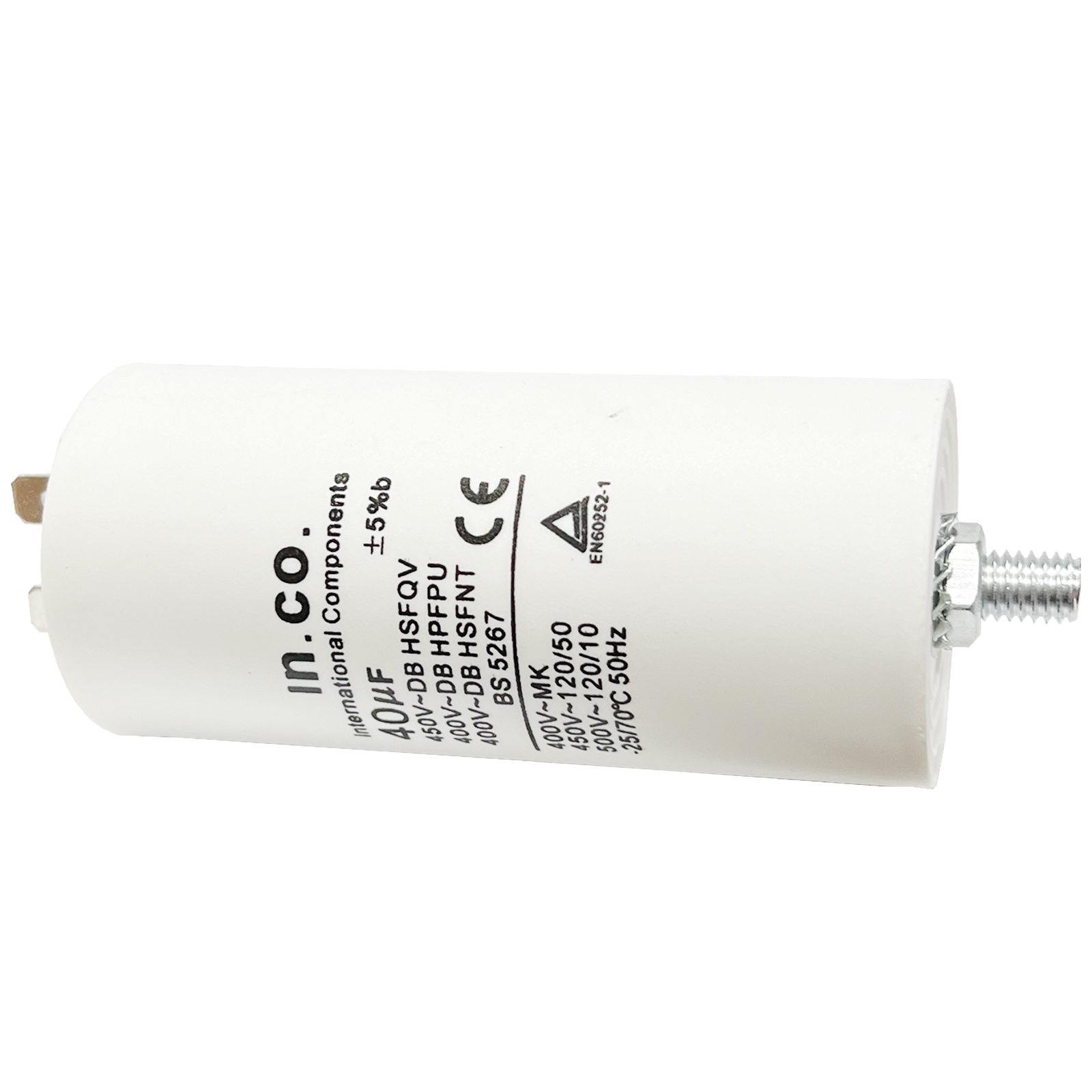 Il condensatore di avviamento da 40 microfarad è progettato per migliorare il rendimento e l'avvio di motori elettrici monofase, come quelli utilizzati in elettrodomestici come lavatrici, condizionatori d'aria e attrezzature industriali leggere.