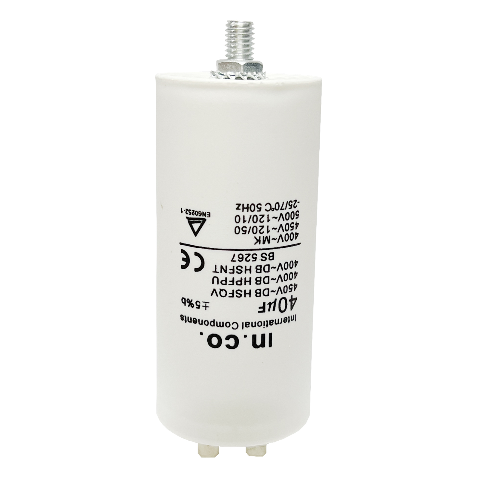 Il condensatore di avviamento da 40 microfarad è progettato per migliorare il rendimento e l'avvio di motori elettrici monofase, come quelli utilizzati in elettrodomestici come lavatrici, condizionatori d'aria e attrezzature industriali leggere.