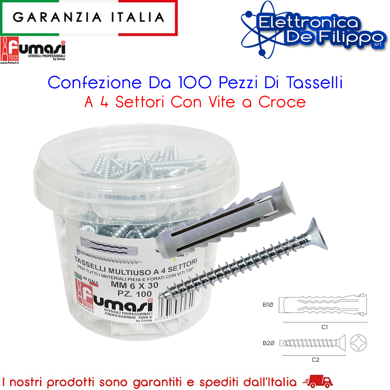 Confezione Da 100 Pezzi Di Tasselli A 4 Settori Con Vite a Croce