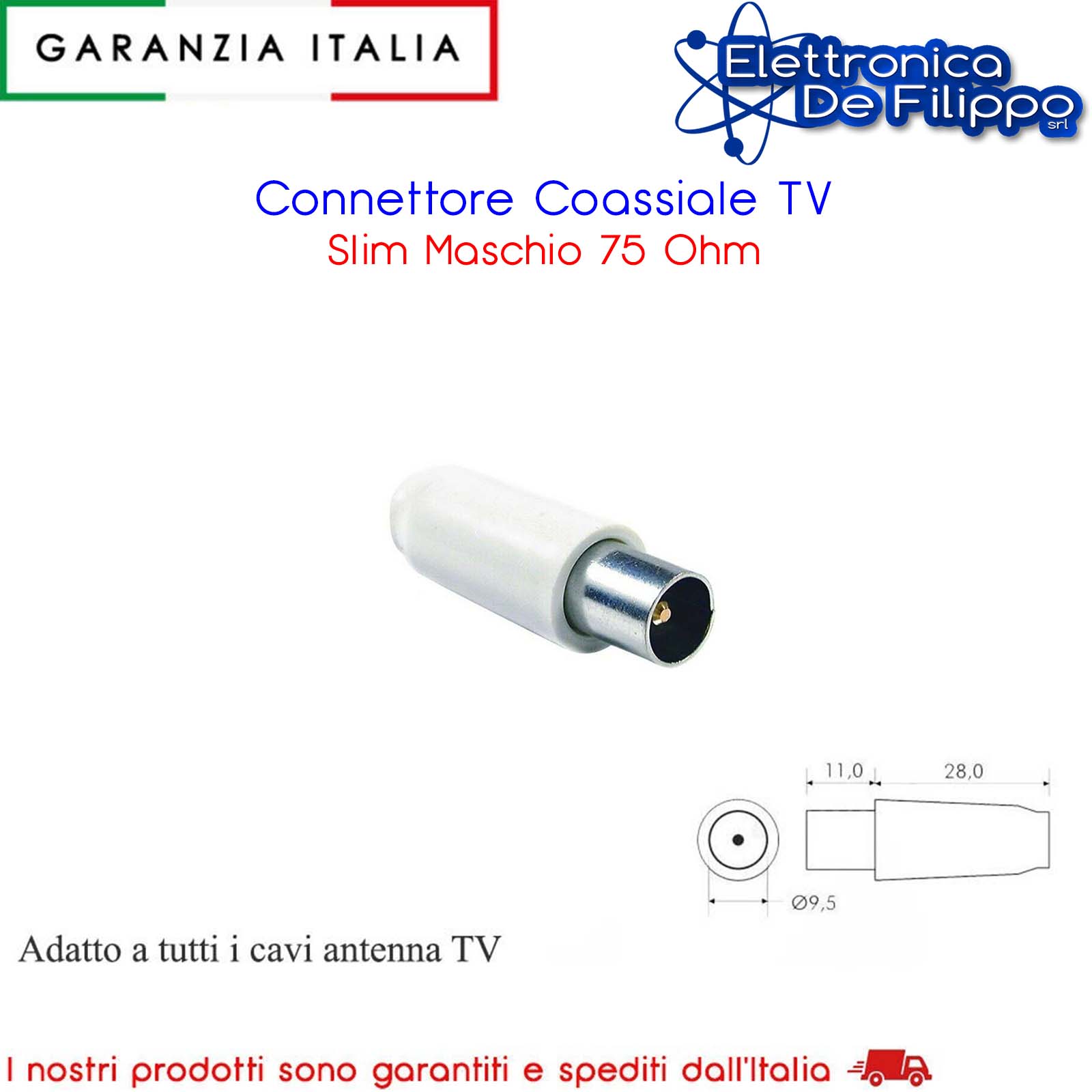 CONNETTORE SPINA MASCHIO TV COASSIALE 75 OHM PER ANTENNA TERRESTRE