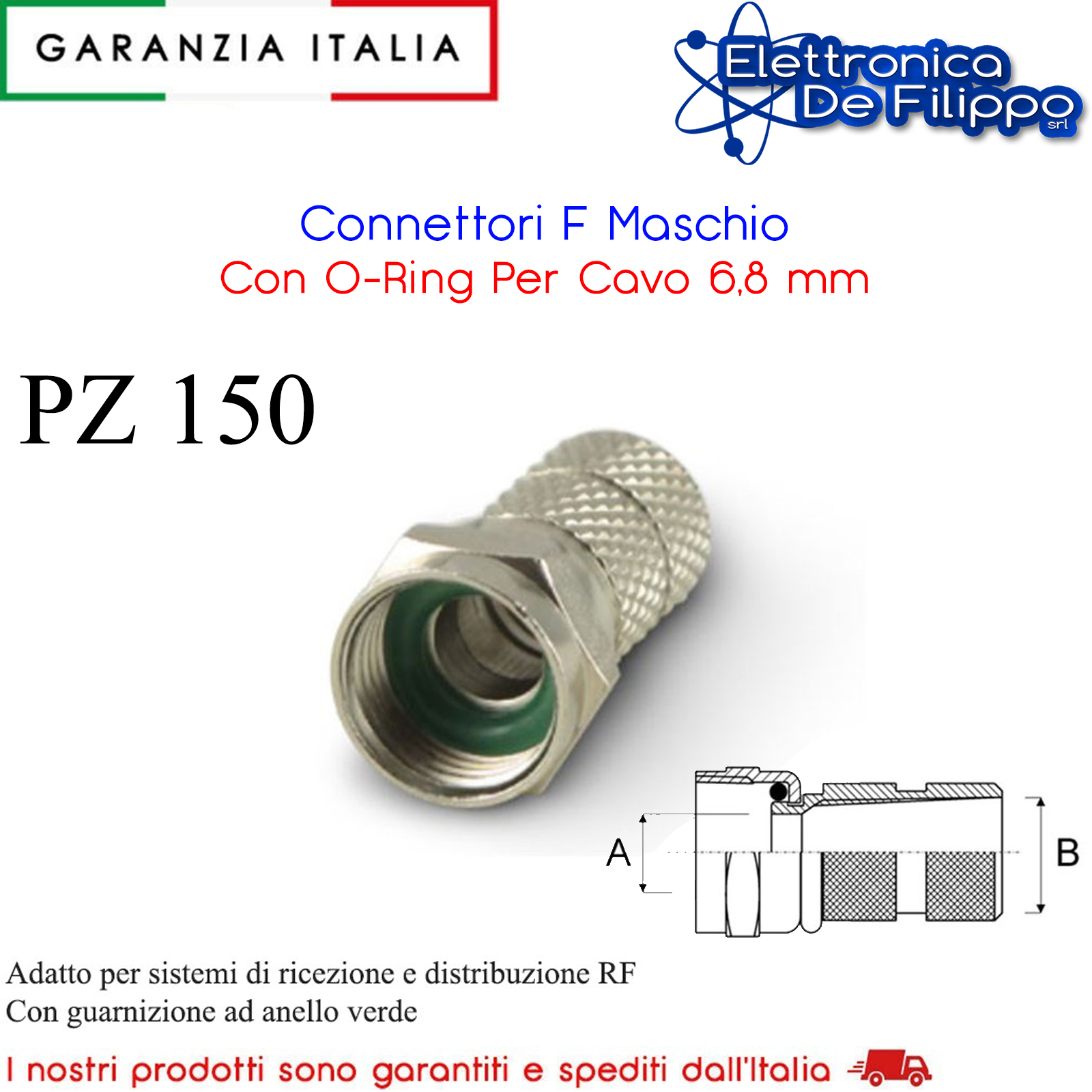 150 Connettori F Maschio Con O-Ring Per Cavo 6,8 mm