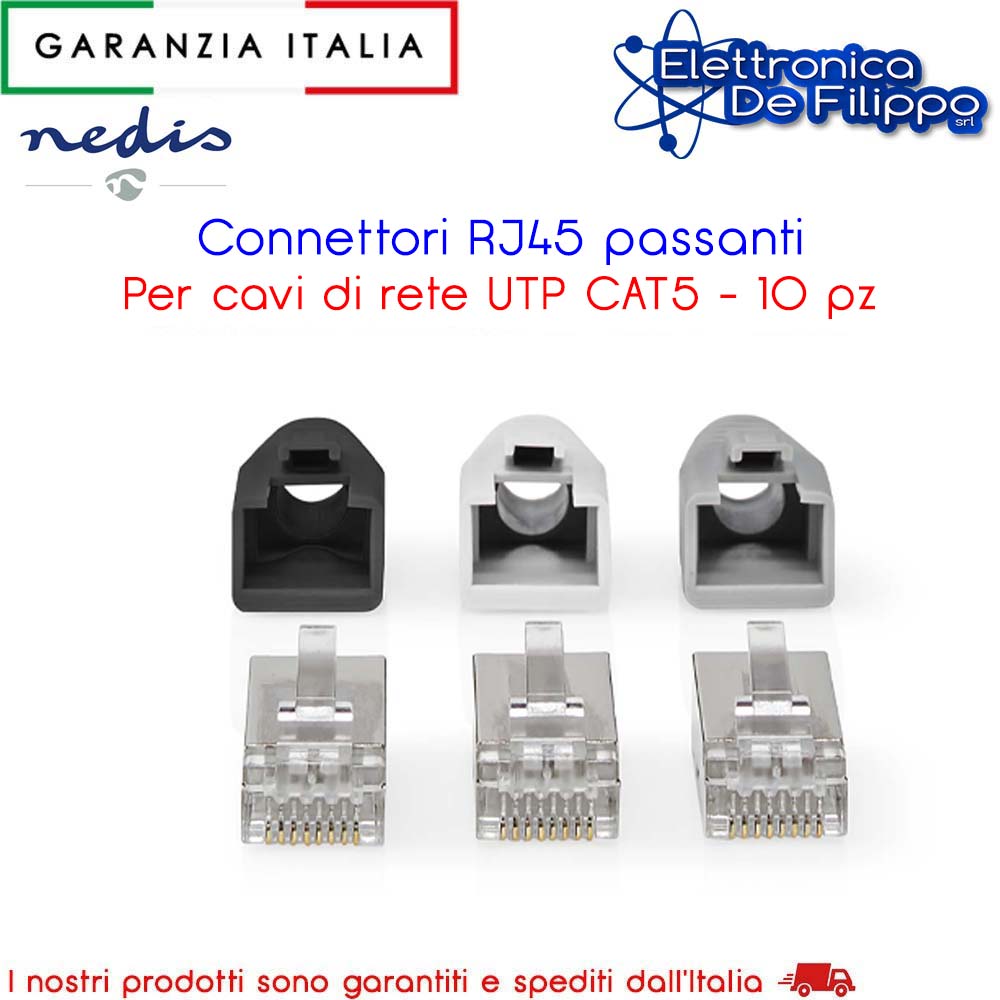 Monta il connettore di rete schermato su un cavo di rete per creare un cavo di rete personalizzato. Il cappuccio fermacavo protegge il cavo da eventuali rotture dovute alla piegatura. Connettori schermati per la protezione del segnale dalle interferenze RFI. Progettato specificamente per cavi di rete CAT5