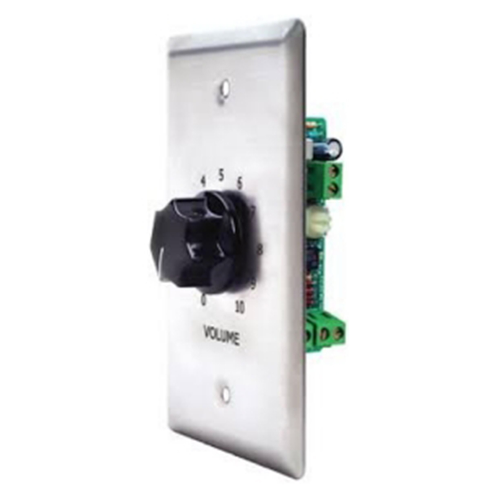 Controllo volume specifico per impianti amplificazione PA, permette di controllare il volume altoparlanti connessi su linea 70/100Volt. Potenza massima 100W. Dimensioni di alloggio adatte per montaggio in scatola incasso tipo 503. Volume regolabile a 10 livelli, profondità di montaggio 49 mm.