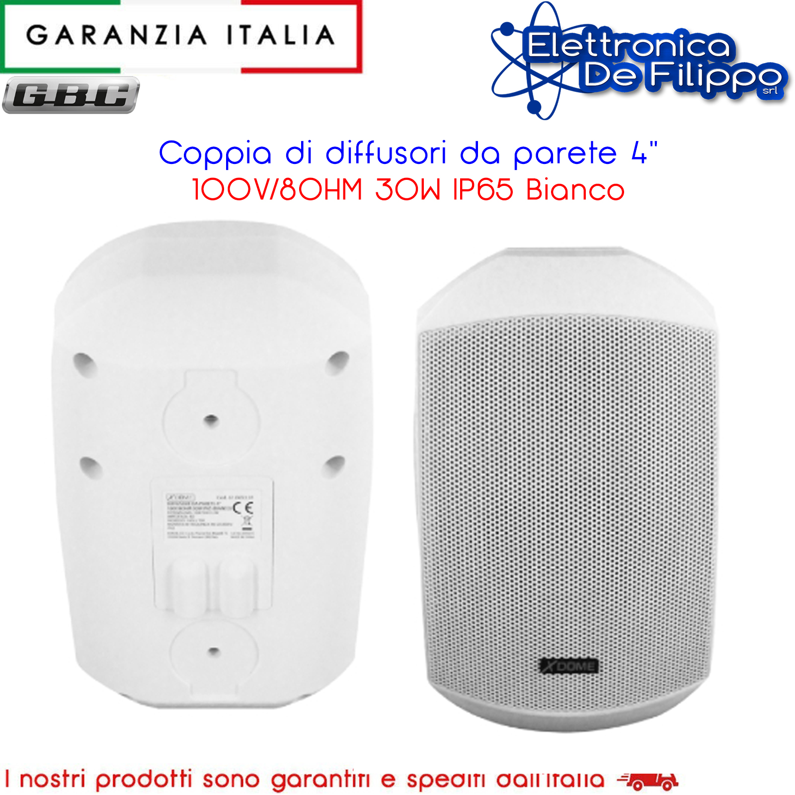 Diffusore da parete progettato con un woofer da 103 mm e un tweeter da 13 mm. Perfetto per l’utilizzo con microfoni oppure per la riproduzione musicale, sia in spazi interni che esterni grazie al grado di protezione IP65 (ristoranti, negozi, chioschi, baite, etc…..). Il telaio è realizzato in ABS di alta qualità, mentre la griglia è in metallo. Colore bianco