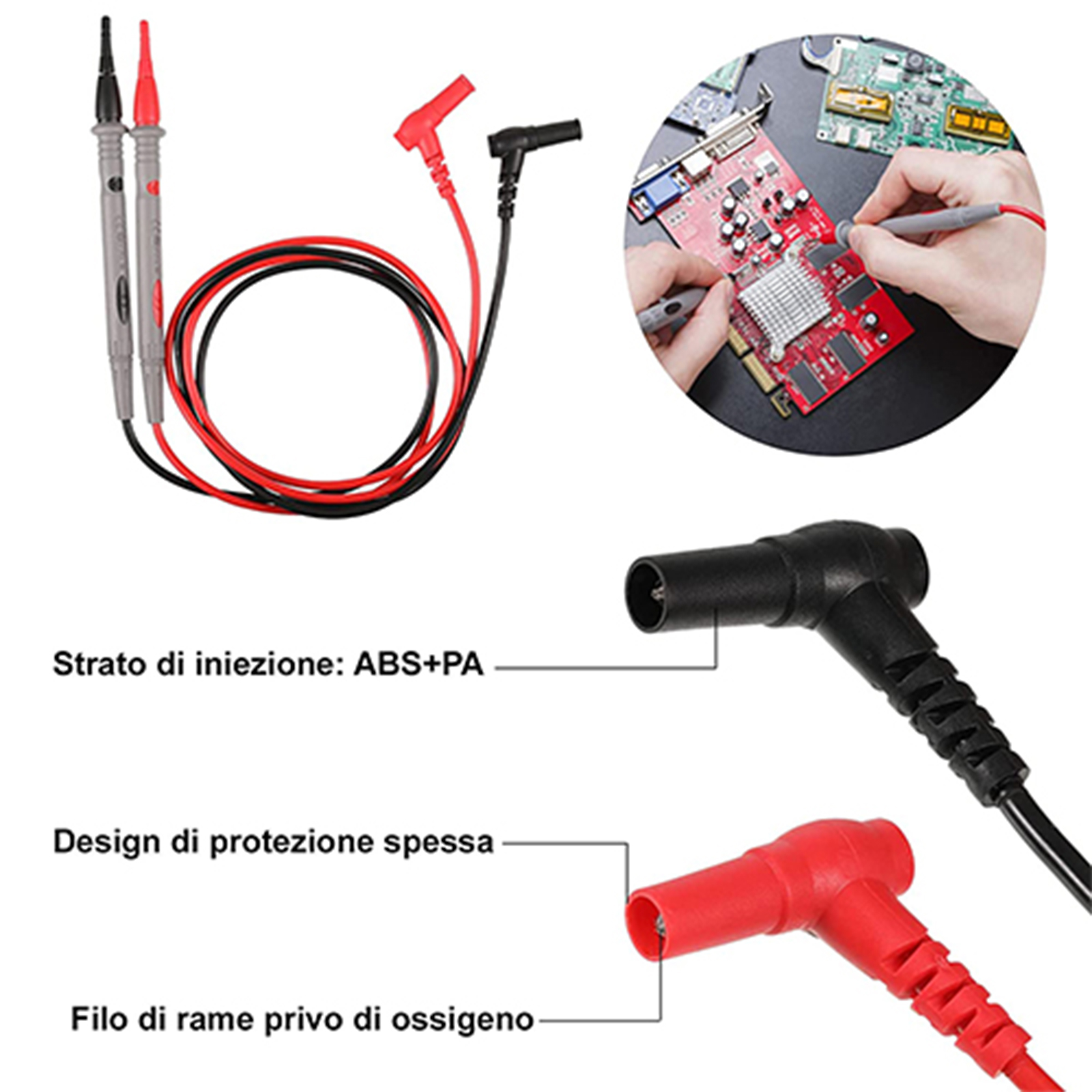 Materiale di alta qualità: la sonda del multimetro da 10 A è realizzata in materiale resistente e robusto, resistente all'abrasione e i puntali del multimetro non si danneggiano facilmente, non sono tossici, i cavi del multimetro sono ecologici
