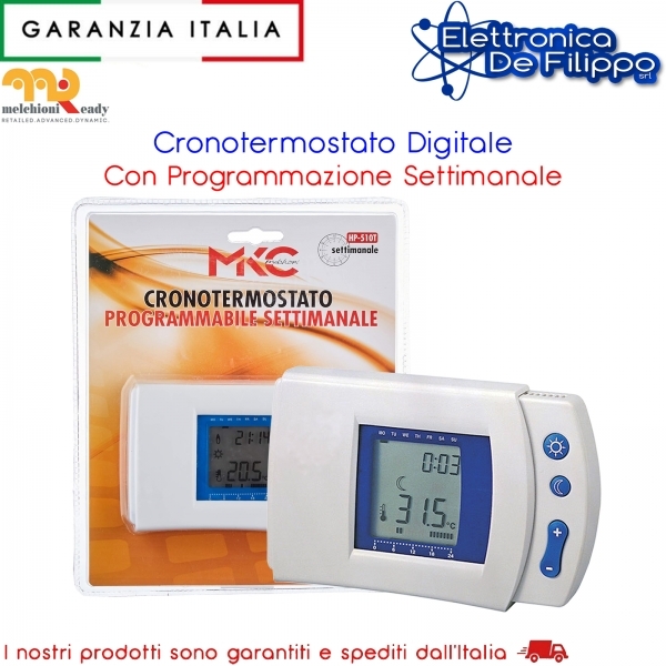 Il cronotermostato digitale programmabile settimanale Hp-510T è un dispositivo affidabile per il controllo intelligente della temperatura in impianti di riscaldamento e sistemi HVAC. Progettato per garantire comfort e risparmio energetico, permette di impostare cicli di temperatura differenti nell’arco della settimana grazie ai suoi 7 programmi preimpostati. Il display a cristalli liquidi facilita la visualizzazione delle impostazioni e la regolazione manuale. Include inoltre funzione vacanze/temporanea e modalità energy saving per ottimizzare i consumi durante periodi di assenza prolungata.