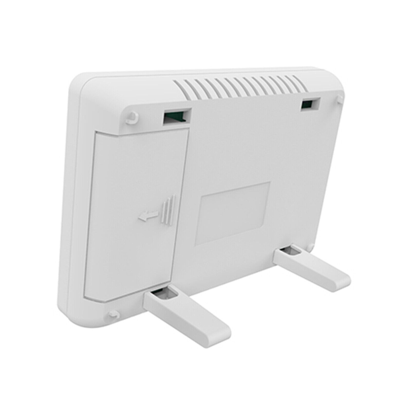 L’unità di controllo può essere installata utilizzando l’apposita staffa per il montaggio a parete o su scatola standard da incasso a tre moduli (seppure nessun collegamento elettrico sia necessario), mentre, rimuovendo la staffa, è possibile l’installazione a tavolo utilizzando gli appositi piedini, forniti in dotazione, inserendoli nei fori rettangolari presenti lungo il bordo inferiore.