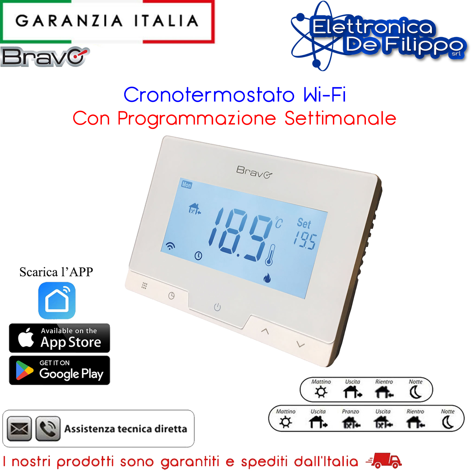 Cronotermostato Digitale Wi-Fi Con display 3,78" + Unità Ricevente Fissa