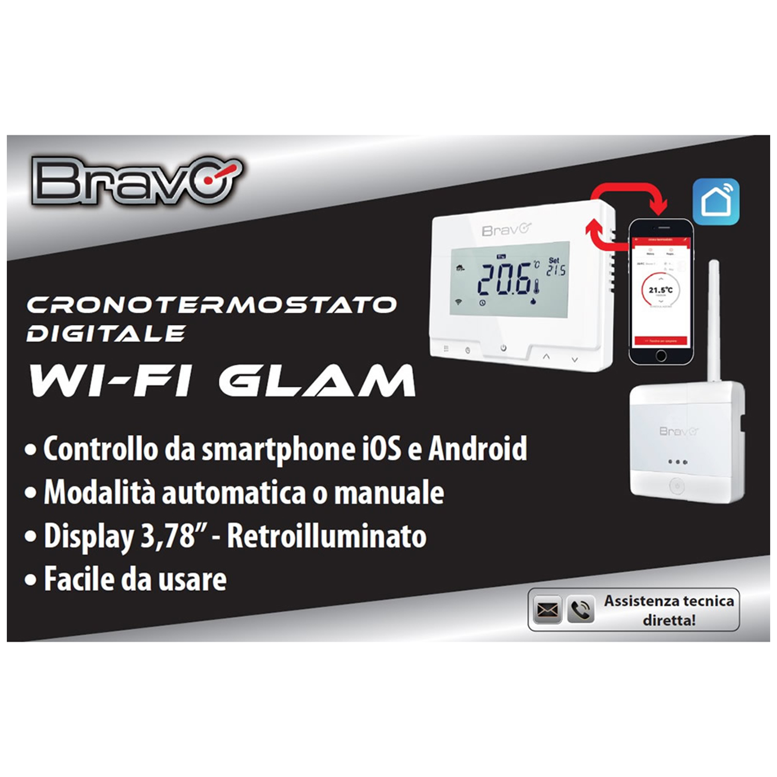 Cronotermostato Digitale Wi-Fi Con display 3,78" + Unità Ricevente Fissa