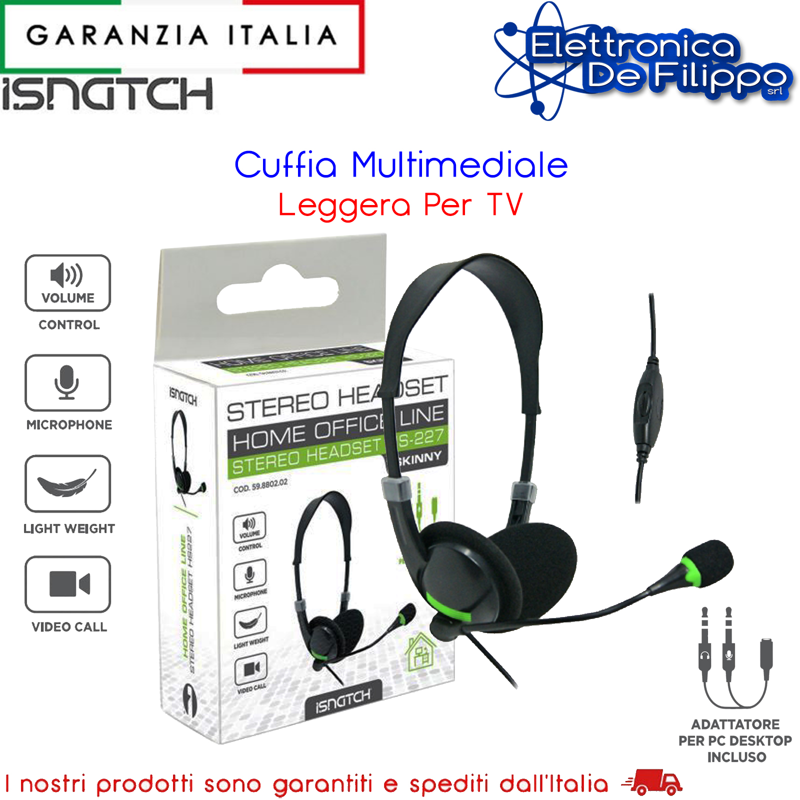 Cuffia con microfono per PC molto leggera adatta a tutti i tipi di comunicazione. Il microfono sensibile trasmette un’alta qualità vocale ed è montato su un braccetto regolabile. Dotata di adattatore da presa 3,5mm stereo 4 poli a 2 spine 3,5mm stereo 3 poli. Utilizzabile con PC desktop, notebook, smartphone e tablet.