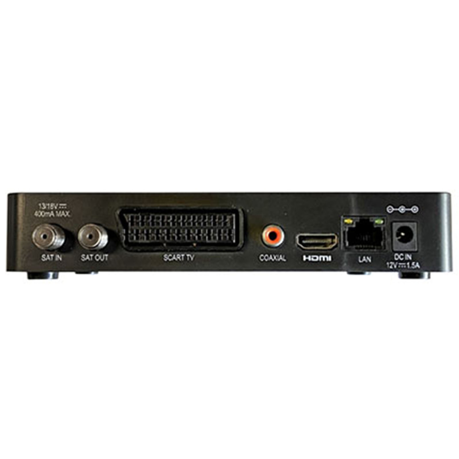 Decoder HD con tuner DVB-S2  per la ricezione via satellite dei canali tivùsat gratuiti più altri canali satellitari in chiaro. Supporto HEVC 10 bit. Tessera tivùsat inclusa. Telecomando universale per pilotare il Decoder e le principali funzioni del TV. Ordinamento automatico dei canali (LCN). Opera sia con un impianto a singolo LNB che in Multifeed (commutazione DiSEqC) e con sistemi motorizzati DiSEqC 1.2. Funzionalità Unicable SCR (gestione fino a 4 ricevitori con un unico cavo di discesa antenna) con supporto dCSS. Compatibile con impianti IF-IF grazie alla funzione Blind Scan. Guida EPG tivùsat a 7 giorni. Servizi interattivi (meteo e mappe con collegamento alla rete internet). Dotato di tasti per accensione/spegnimento, regolazione volume, cambio canali. Compatibilità audio Dolby Digital. Aggiornabilità via antenna OTA e via USB; Televideo; Sottotitoli; Timer; Parental control; 1 x HDMI 1080p; 1 x Scart; 1 x RJ45; 1 x USB; 1 x audio ottica digitale S/PDIF. Alimentazione: 230Vca/12Vcc (alimentatore incluso, utilizzabile anche in uso mobile)Dimensioni: 170x35x100mm.Peso: 0,35kg