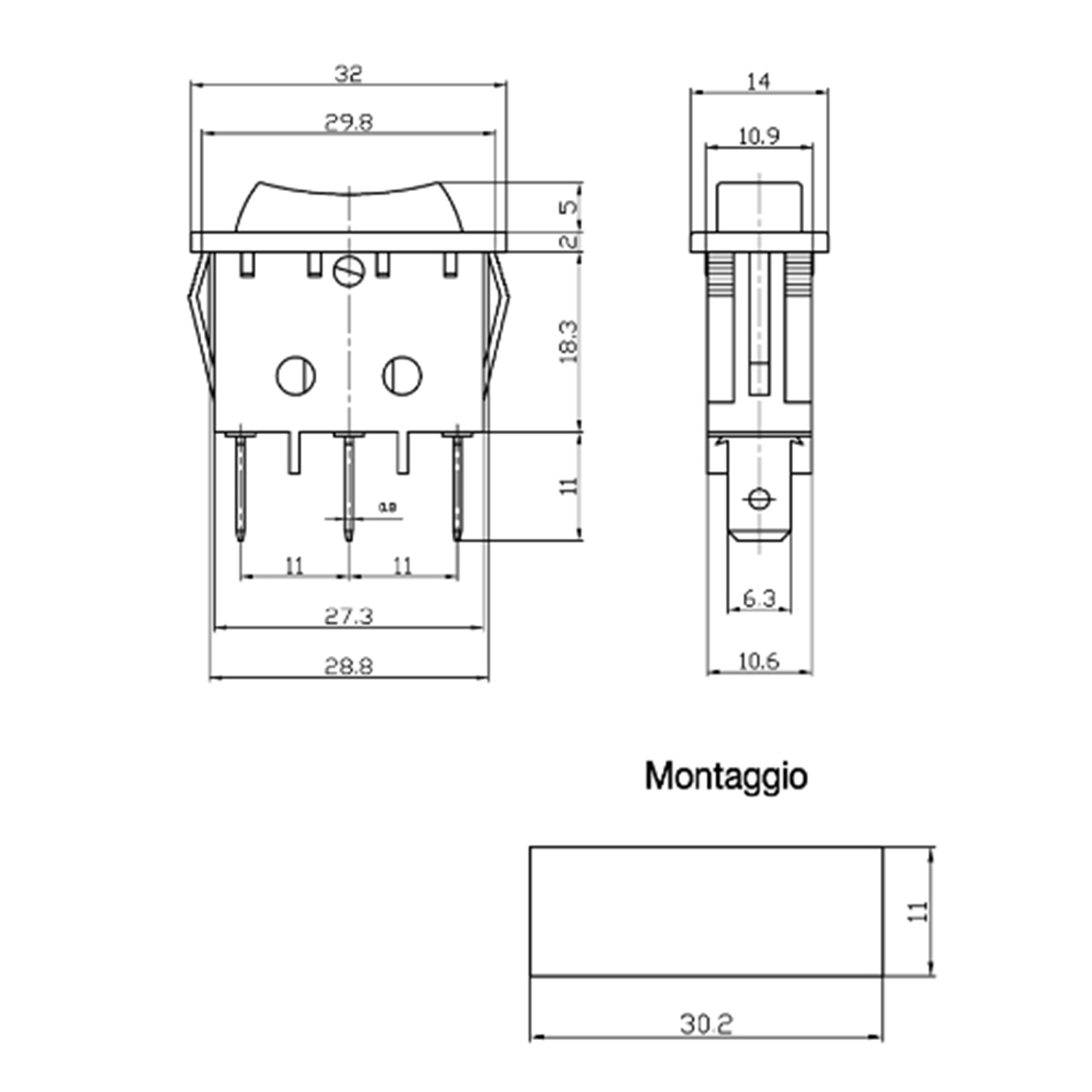 Deviatore a Bascula Unipolare Per Auto Nero (MOM)-OFF-(MOM)