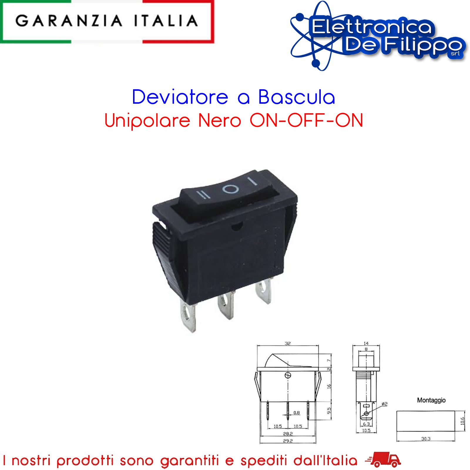 Deviatore a Bascula Unipolare Nero ON-OFF-ON