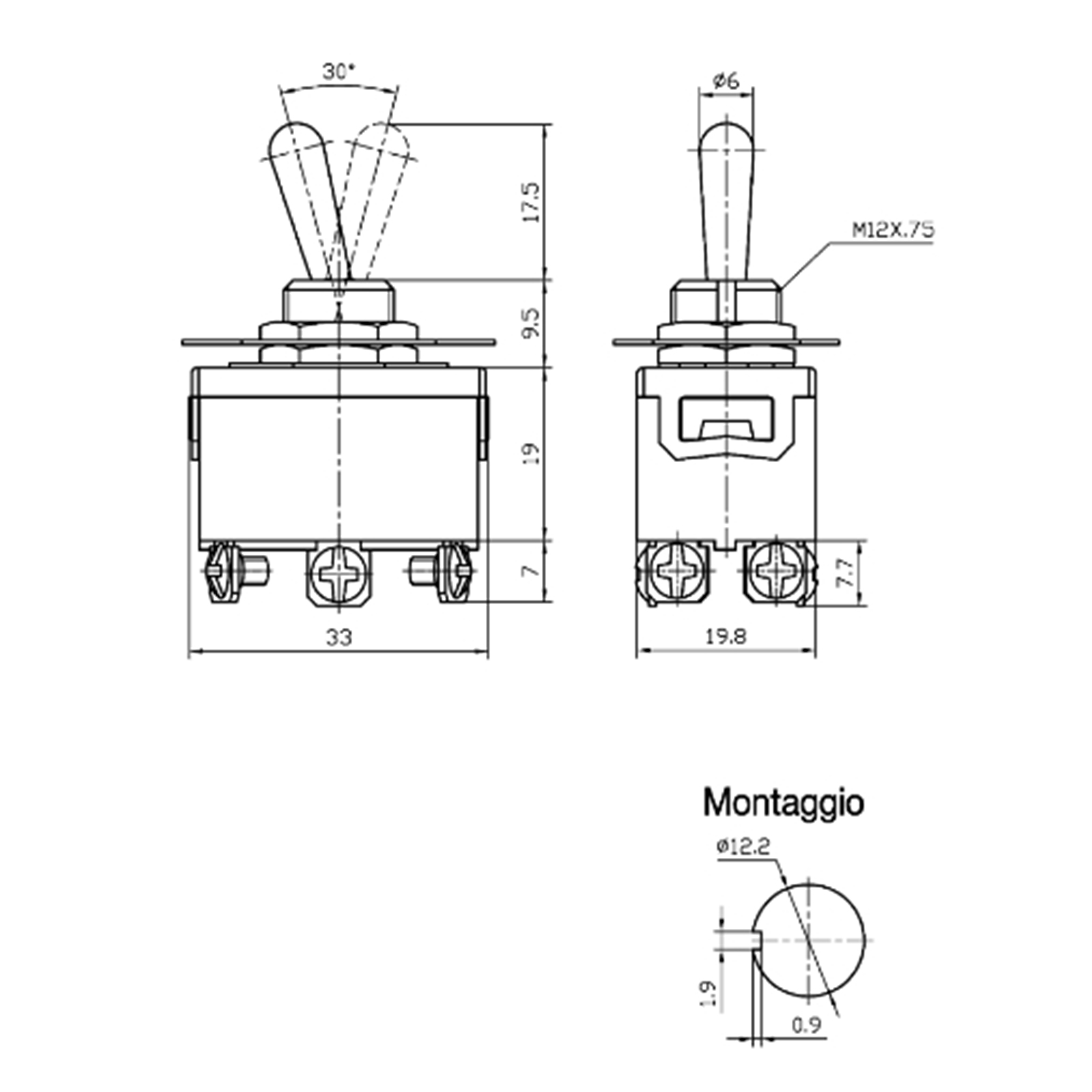 Foro fissaggio: 12 mm
