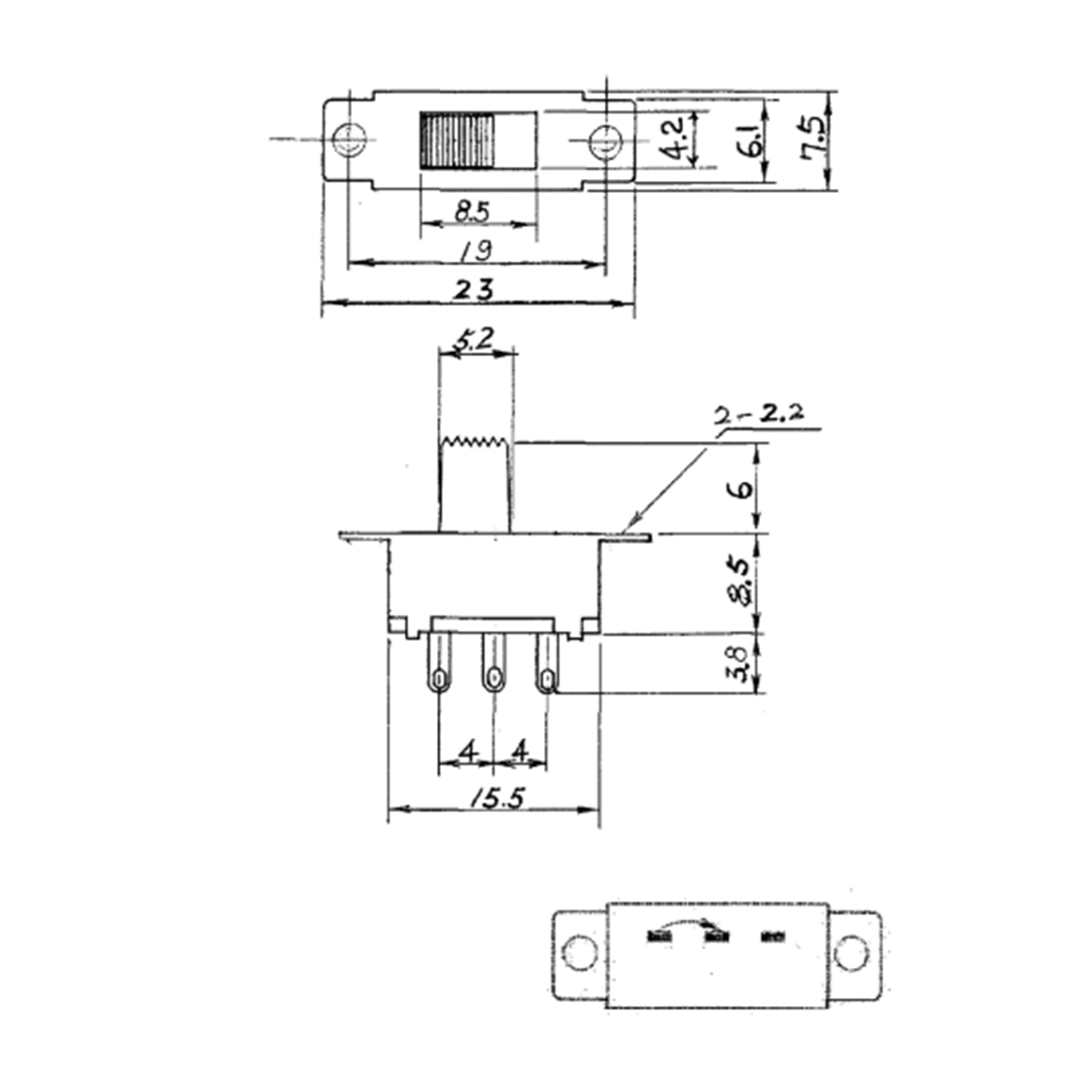 Dimensioni Corpo: 7.5x23x8.5 mm