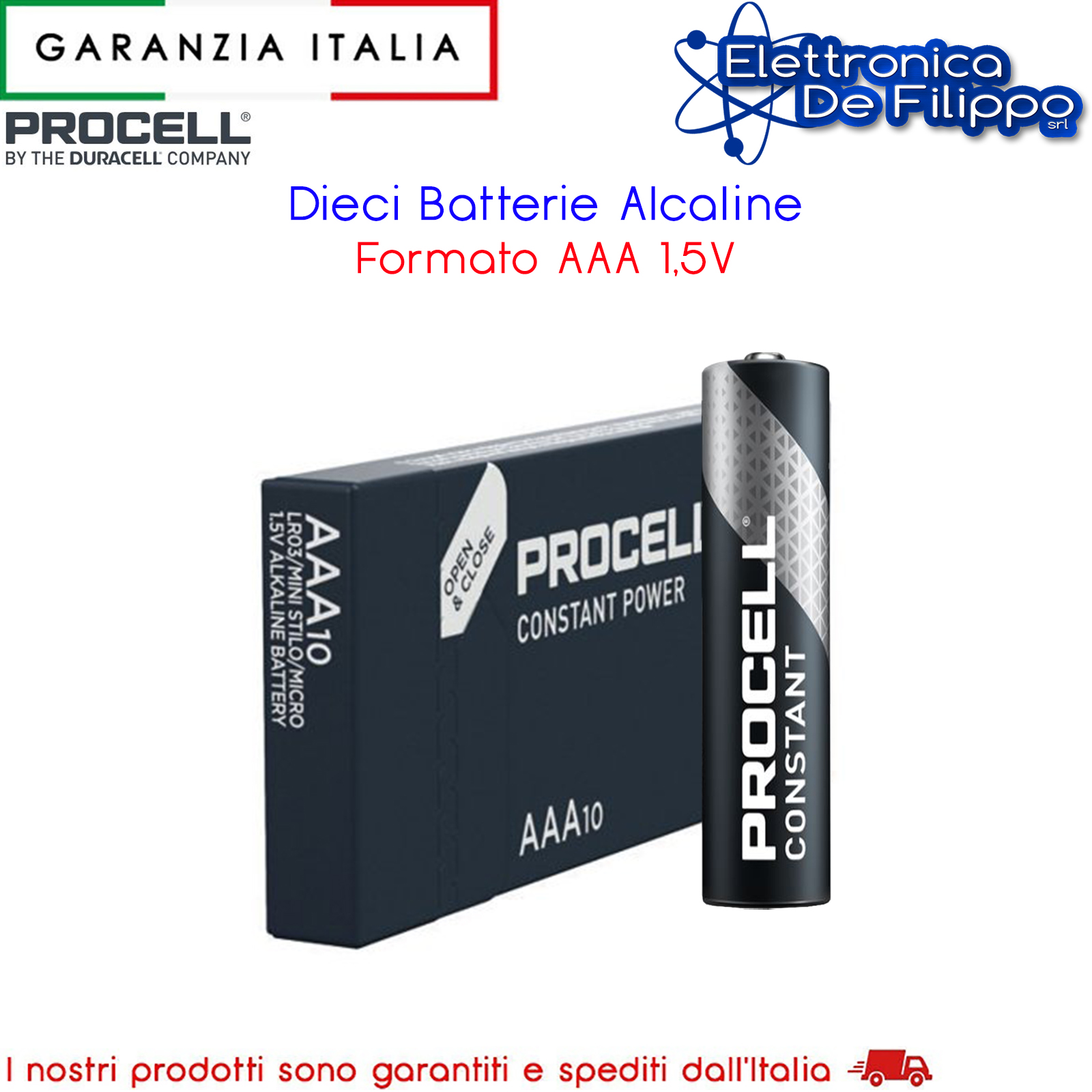Risparmia fino al 20% passando alla coppia Procell – Procell Constant per i dispositivi a basso consumo e Procell Intense per quelli ad alto consumo (risparmio stimato rispetto alla concorrenza) Usa fino al 20% di batterie in meno passando alla coppia di batterie Procell per la tua azienda (rispetto alla media dei prodotti concorrenti) Offre una maggiore durata (rispetto alle precedenti batterie alcaline AAA Procell) in dispositivi professionali a basso consumo, il che può comportare un minor numero di sostituzioni di batterie e quindi un risparmio sui costi operativi associati alla sostituzione delle batterie Garantita per 10 anni in stoccaggio Prodotte tramite un design avanzato delle celle (rispetto alle precedenti batterie alcaline AAA Procell), che ne garantisce la realizzazione di alta qualità. Ogni batteria dispone di una “garanzia di qualità”. Design, sicurezza, fabbricazione e qualificazione seguono i severi standard delle batterie Procell, che incorporano parti degli standard ANSI e IEC. In convenienti confezioni per la vendita all’ingrosso e dotate di codice individuale con data, per consentire una gestione efficace dell’inventario. Utilizzate dai produttori di tutto il mondo: le batterie alcaline Procell sono state progettate in collaborazione con i produttori per funzionare al meglio nei dispositivi professionali Operative a temperature da -20 °C a 54 °C