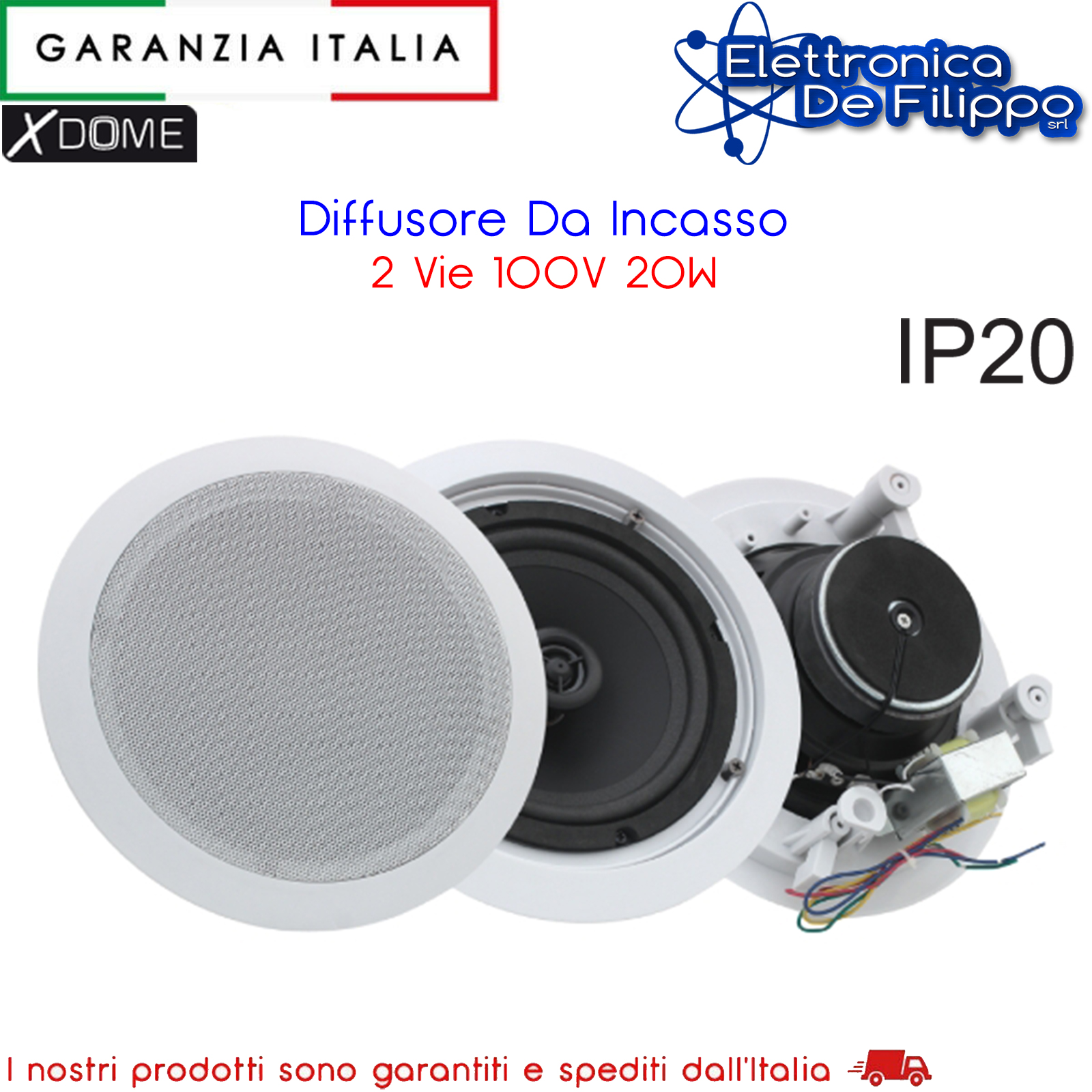 Serie di diffusori professionali a due vie coassiali 100V da incasso. Sono provvisti di woofer con cono in polipropilene e sospensione in gomma in grado di offrire un ottima risposta alle basse e medie frequenze, mentre il tweeter a cupola garantisce un elevato livello di pressione sonora alle alte frequenze. Questi diffusori sono dotati di ganci rapidi per un fissaggio semplice e sicuro nelle controsoffittature. Le loro caratteristiche assicurano un eccellente riproduzione sonora in tutta l'area di ascolto. Particolarmente indicati per l'utilizzo in una vasta gamma di ambienti quali negozi, sale di attesa, sale conferenze, ristoranti, hotel, ecc.