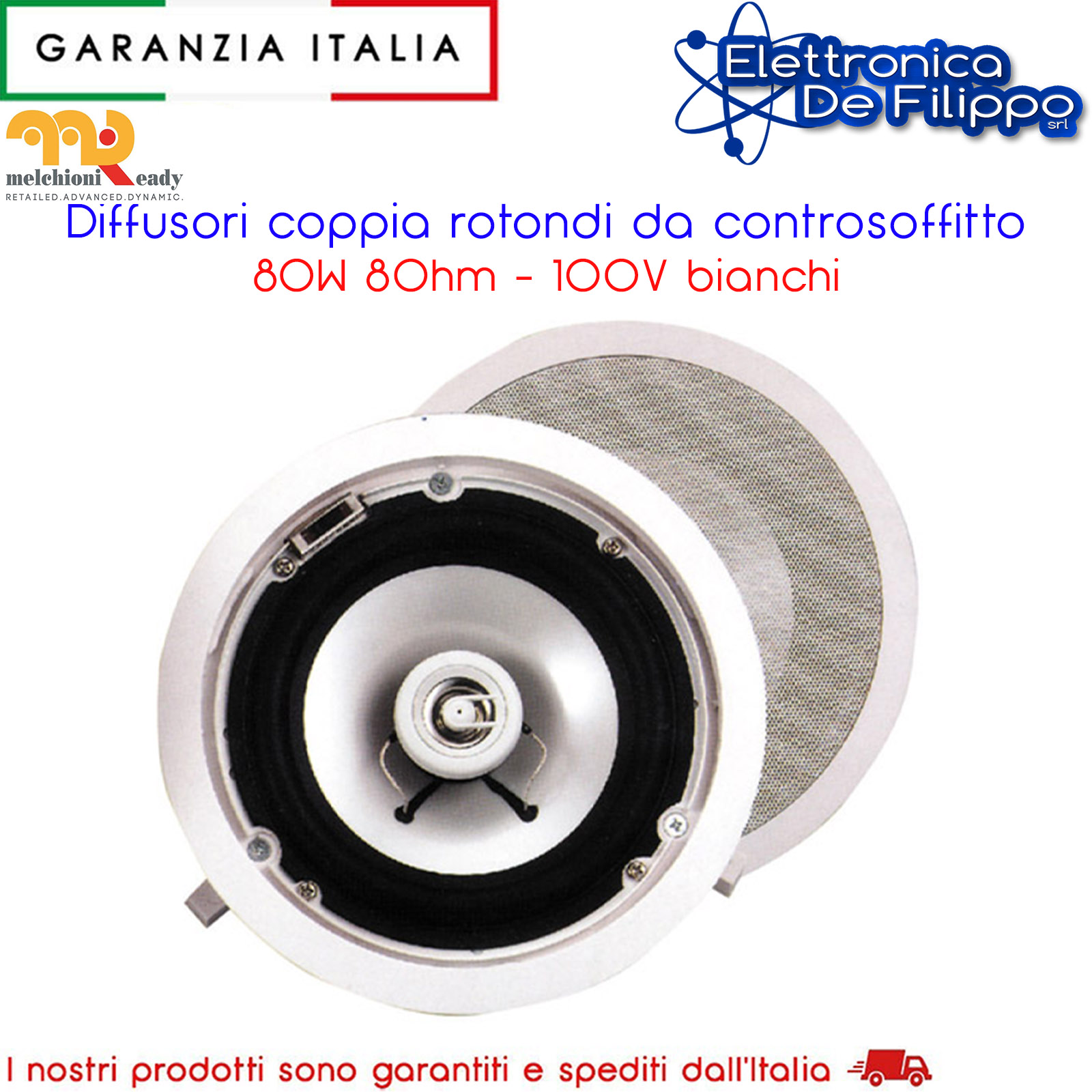 Coppia diffusori PA due vie da interno di alta qualità, utilizzabili per installazioni in controsoffitti su linea con trasformatore 100V e compatibili con sistemi a 8?.