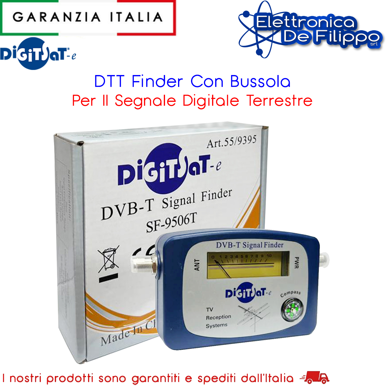 Facilita il puntamento dell'antenna TV misurando su scala graduata il segnale. Dotato di regolatore per il rilevamento dell'intensita' di segnale e di bussola per facilitare l’ orientamento. Da collegare in serie al cavo.