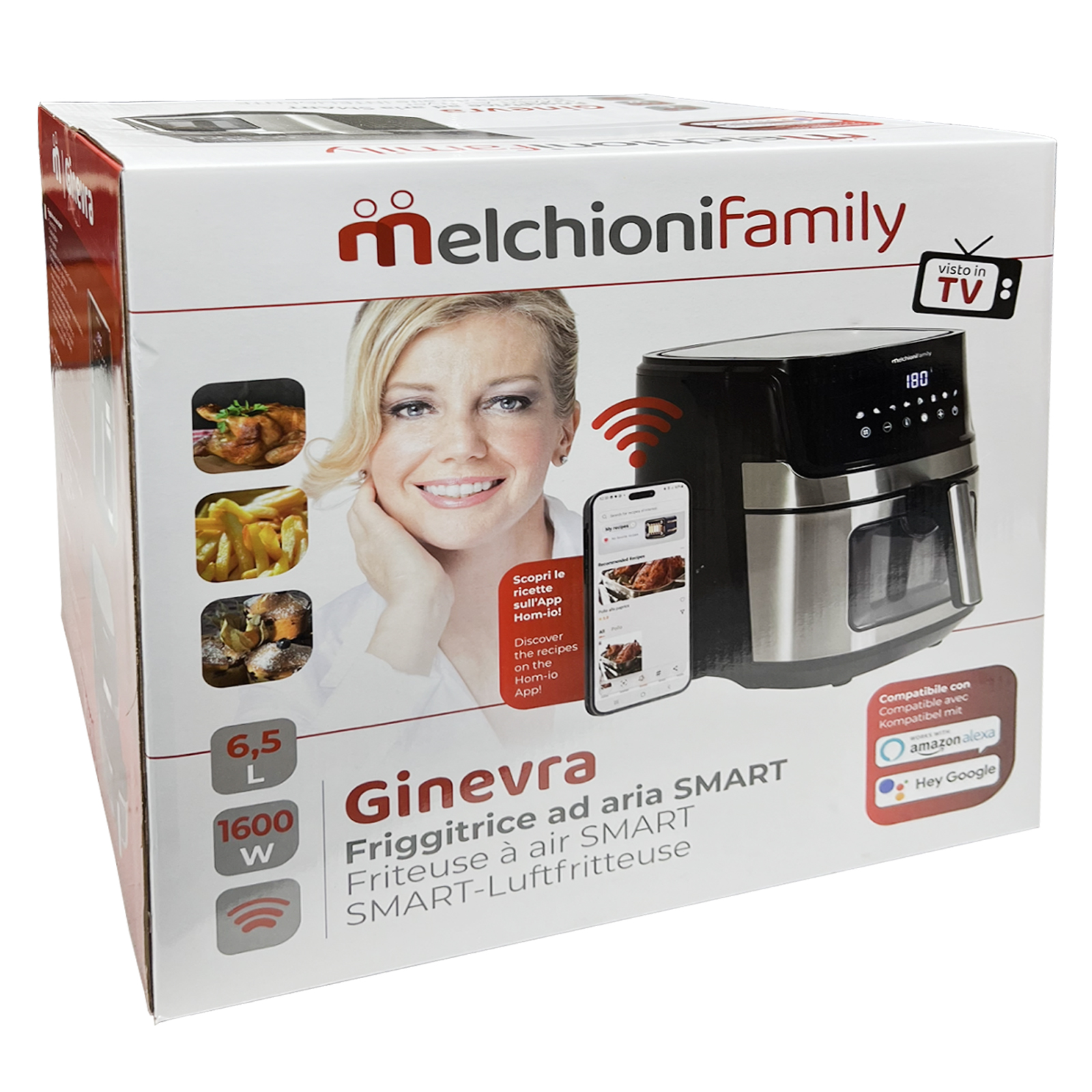 Grazie all’App Hom-io inclusa, la tua esperienza in cucina diventa ancora più straordinaria. L’applicazione è progettata per essere intuitiva e ricca di ricette che ti ispireranno ogni giorno. Non sarai mai solo ai fornelli con Hom-io, poiché avrai sempre un supporto in cucina. Ma la sorpresa più grande? La compatibilità con Amazon Alexa e Google Home! Con un semplice comando vocale, potrai regolare la temperatura e il timer, senza dover alzare un dito.