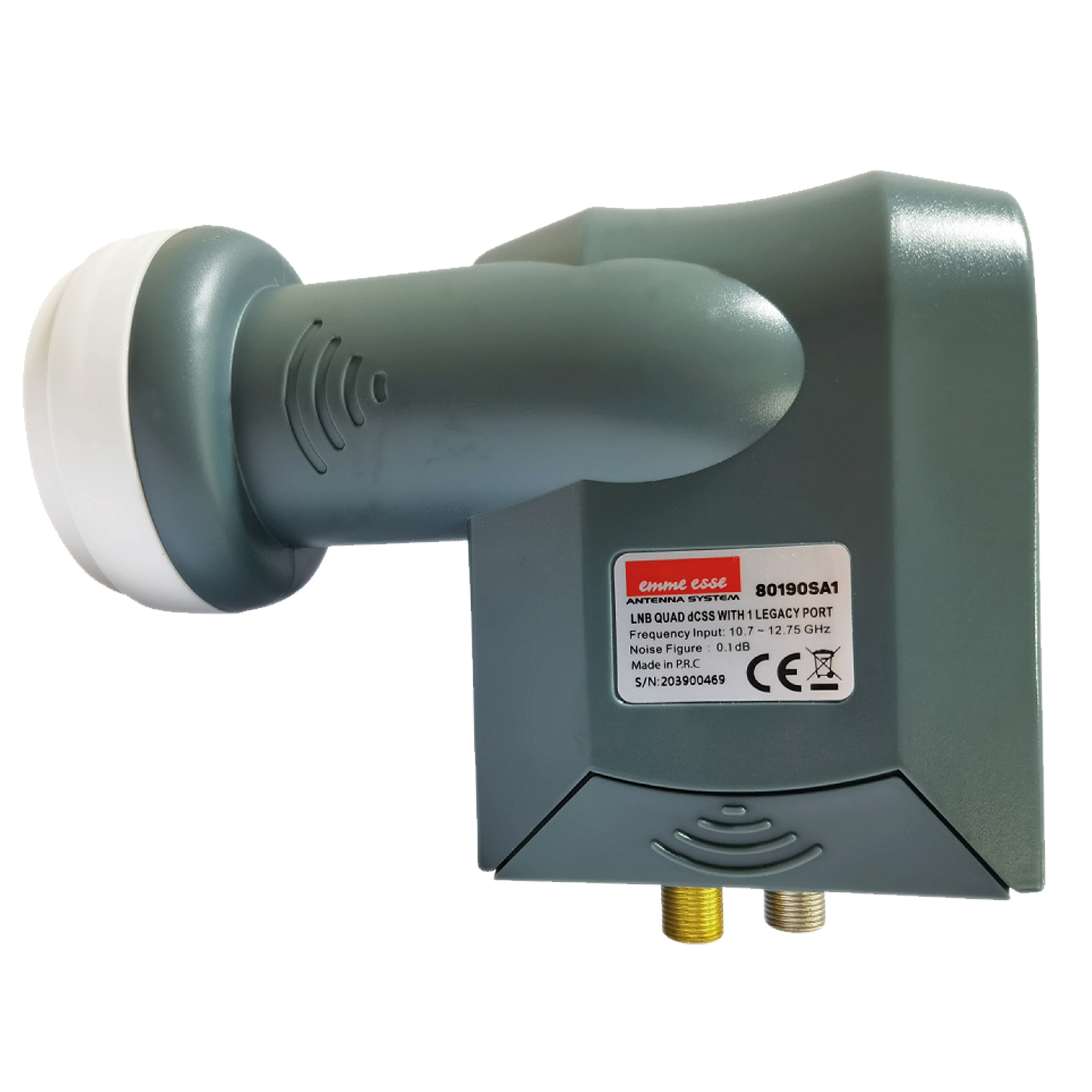 LNB con 1 uscita dCSS. Adatto ad impianti monocavo multiutenza anche con decoder multituner di nuova generazione. Dotato di 1 porta legacy universale per rapido puntamento parabola o per collegamento di utenze extra.