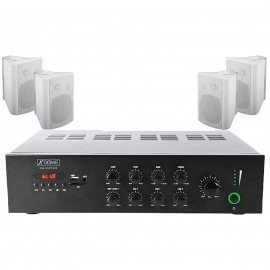 KIT Amplificatore e 4 casse bianche per filodiffusione in lo