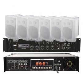 AMPLIFICATORE PROFESSIONALE MUSICALE 6 CASSE BIANCHE INCLUSE