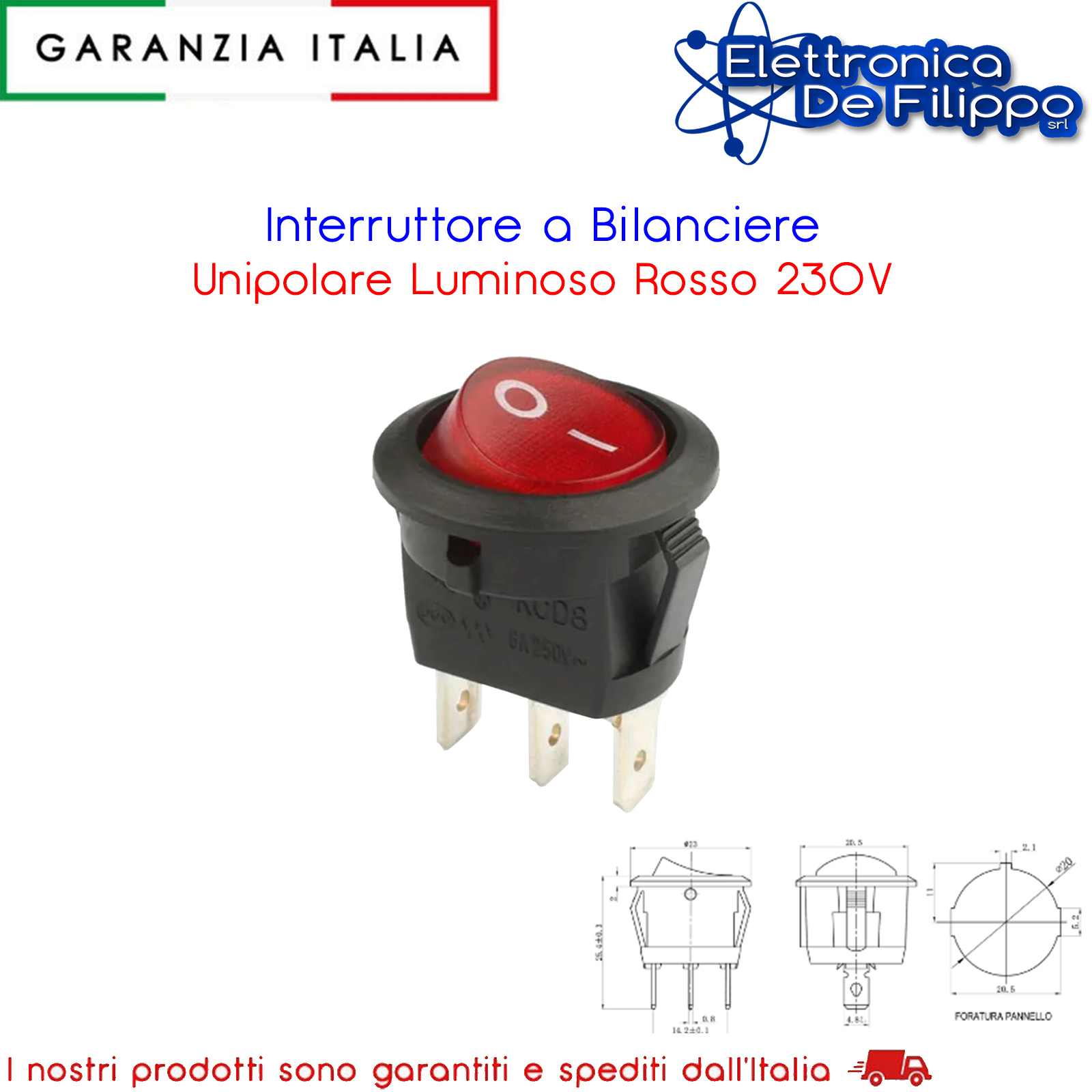 Interruttore a Bilanciere Unipolare Luminoso Rosso 230V