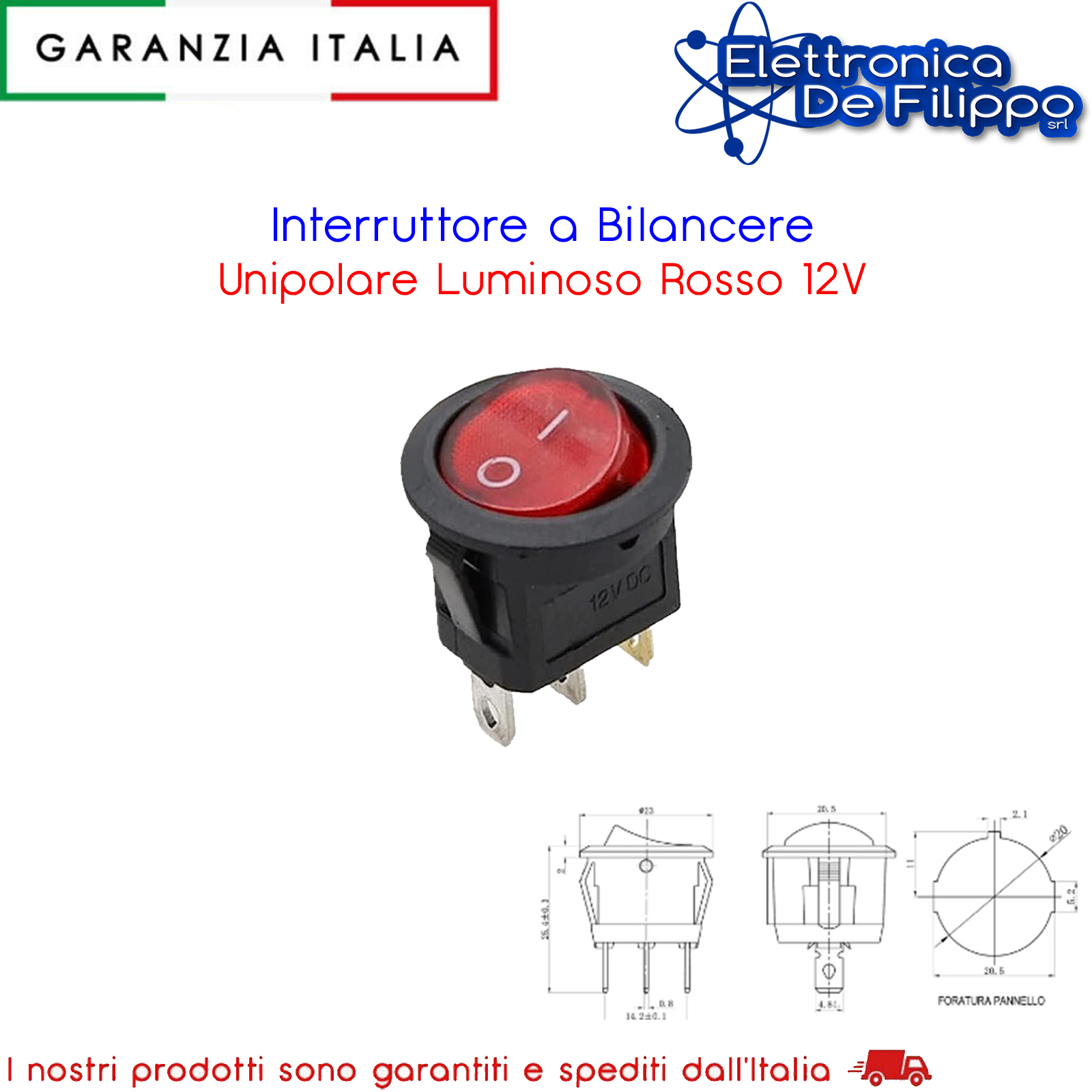 Interruttore a Bilanciere Unipolare Luminoso Rosso 12V