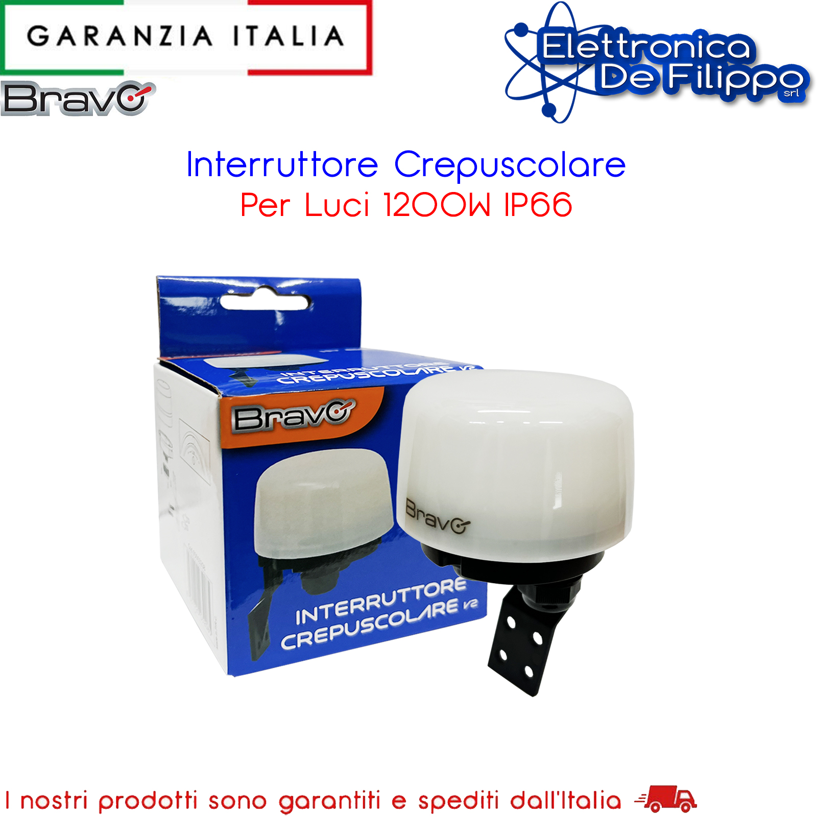 Interruttore crepuscolare con regolazione di intensità luminosa Accende automaticamente la luce collegata al crepuscolo e la spegne non appena la luce ambientale torna sopra la soglia prestabilita Per terrazzo, giardino, posto auto, magazzino, lampioni stradali Facile da installare