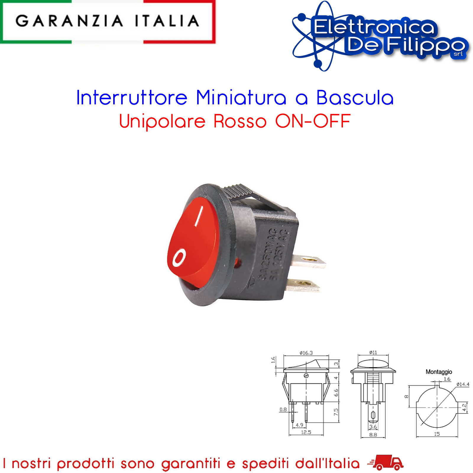 Interruttore Miniatura a Bascula Unipolare Rosso ON-OFF