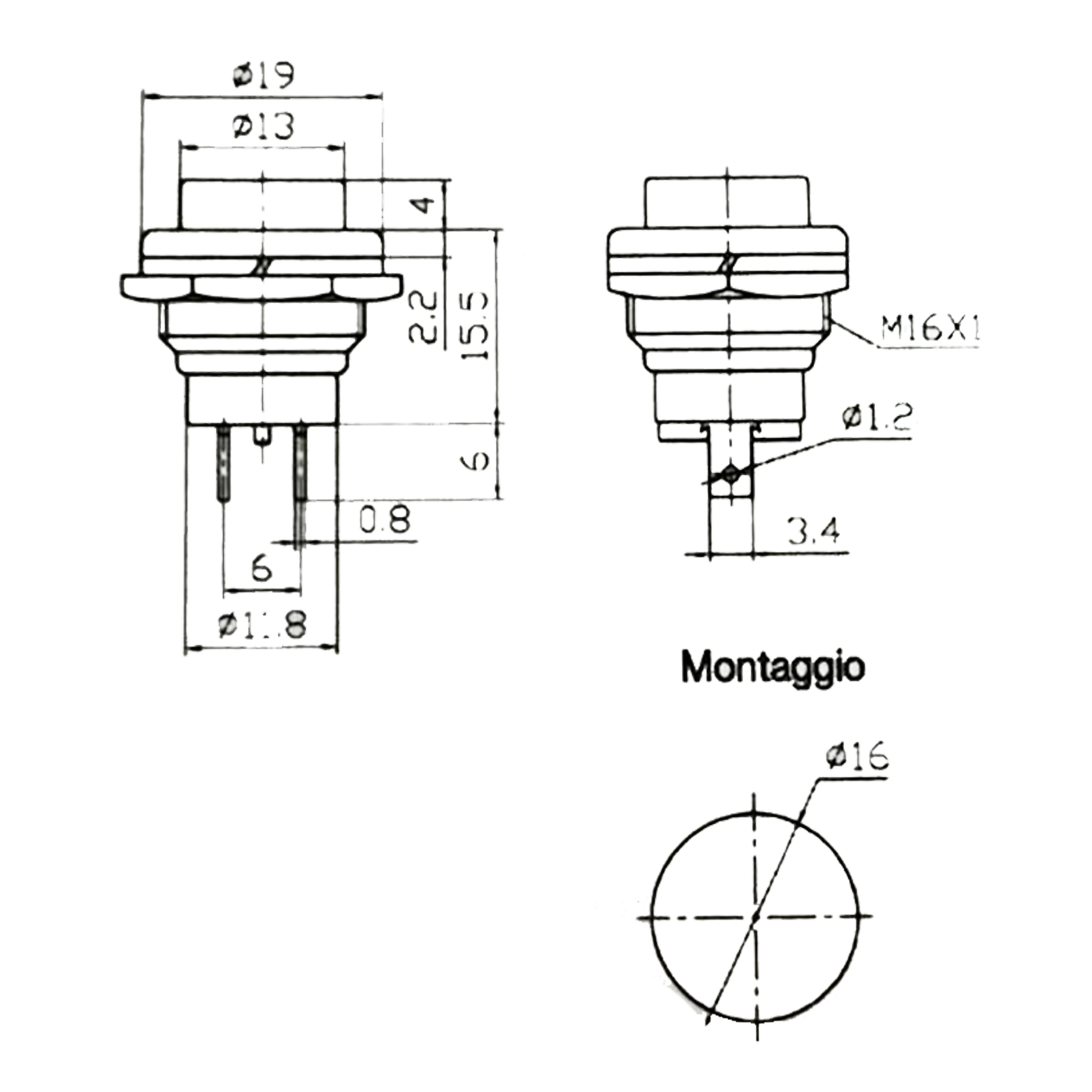 Interruttore a Pulsante Miniatura Stabile Rosso ON-OFF