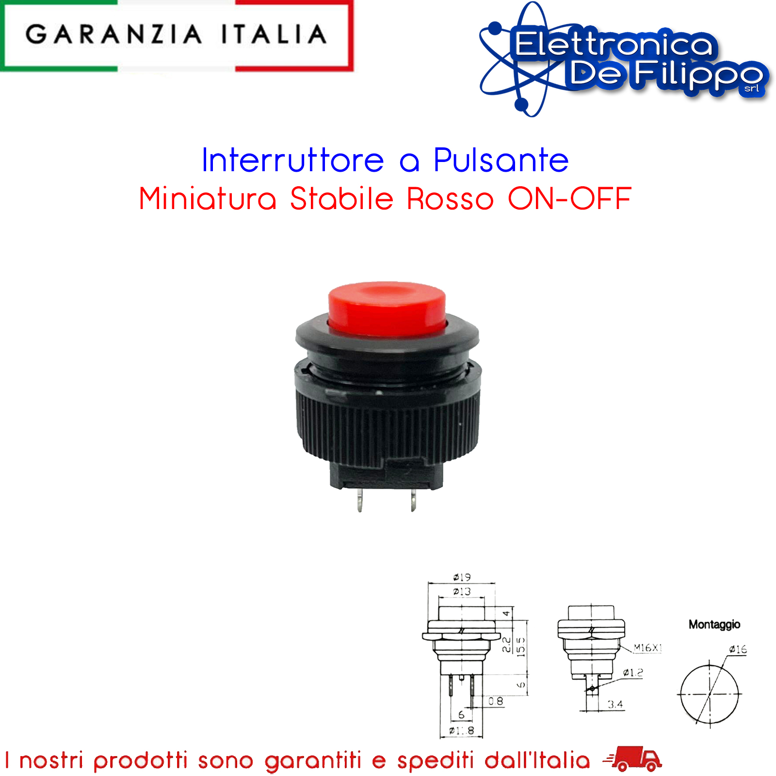 Interruttore a Pulsante Miniatura Stabile Rosso ON-OFF