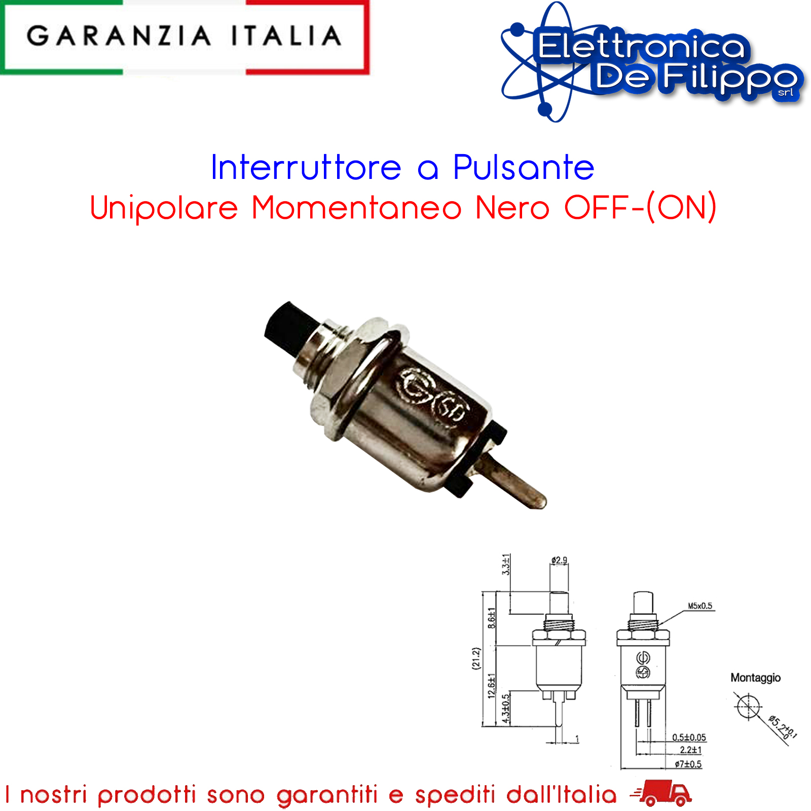 Interruttore a Pulsante Unipolare Momentaneo Nero OFF-ON