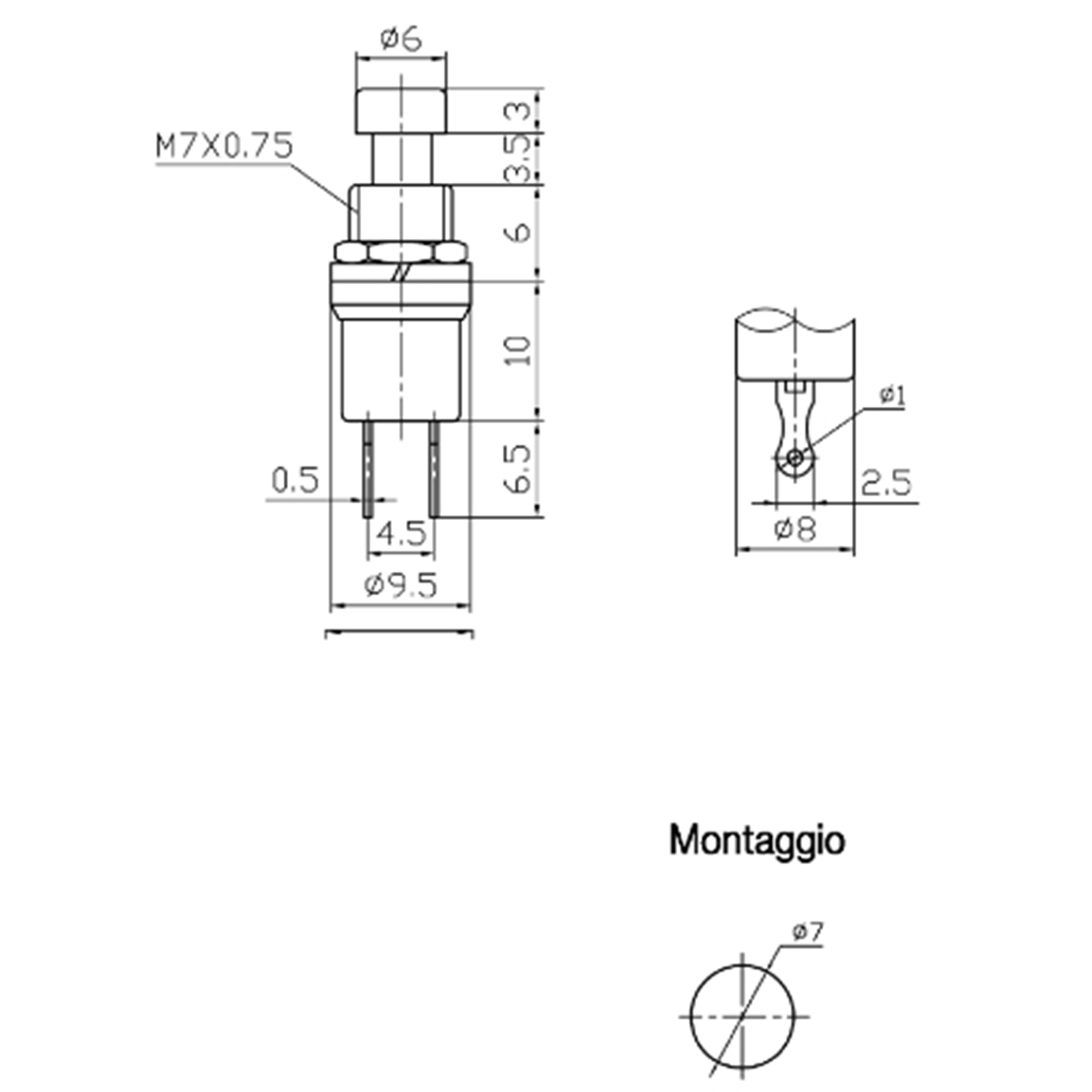 Interruttore a Pulsante Unipolare Momentaneo Rosso OFF-(ON)
