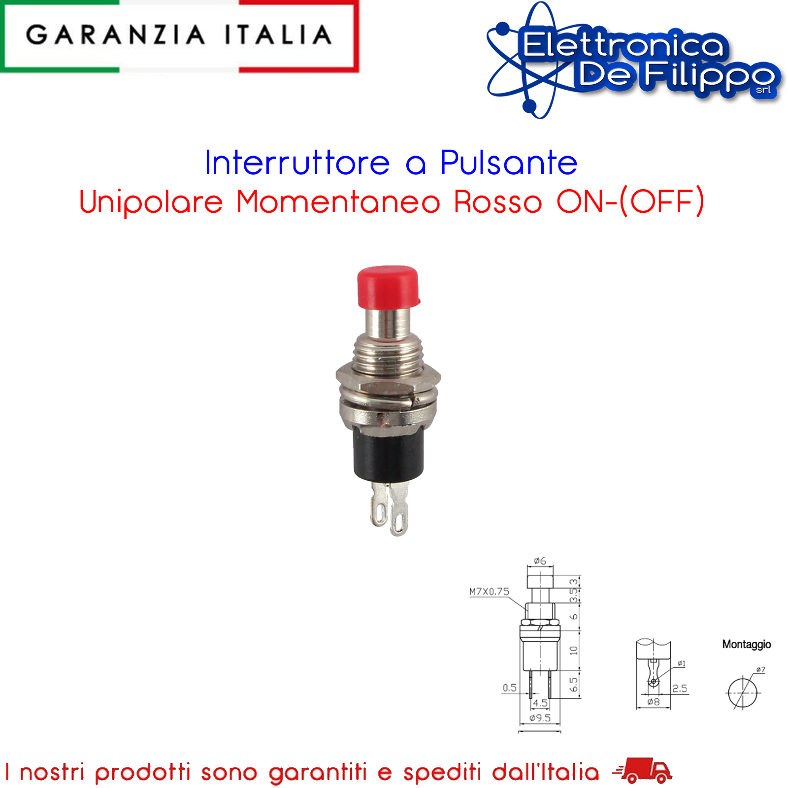 Interruttore a Pulsante Unipolare Momentaneo Rosso ON-(OFF)