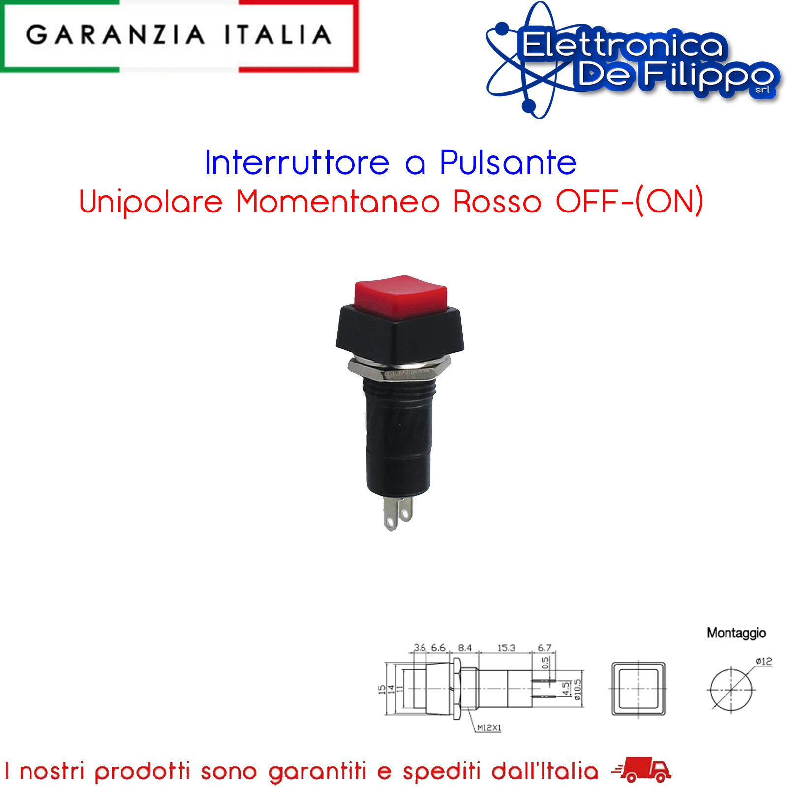 Interruttore a Pulsante Unipolare Momentaneo Rosso OFF-(ON)
