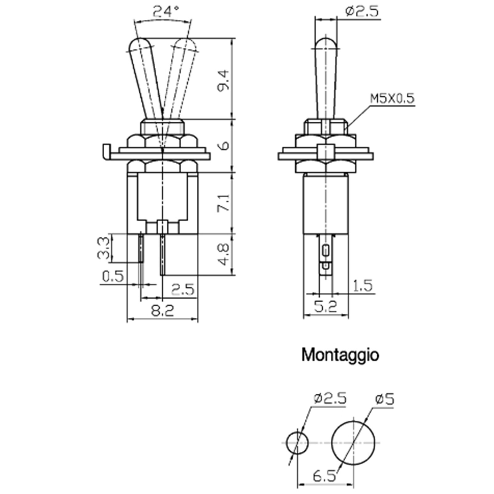 Deviatore Miniatura a Bascula Unipolare Nero ON-ON