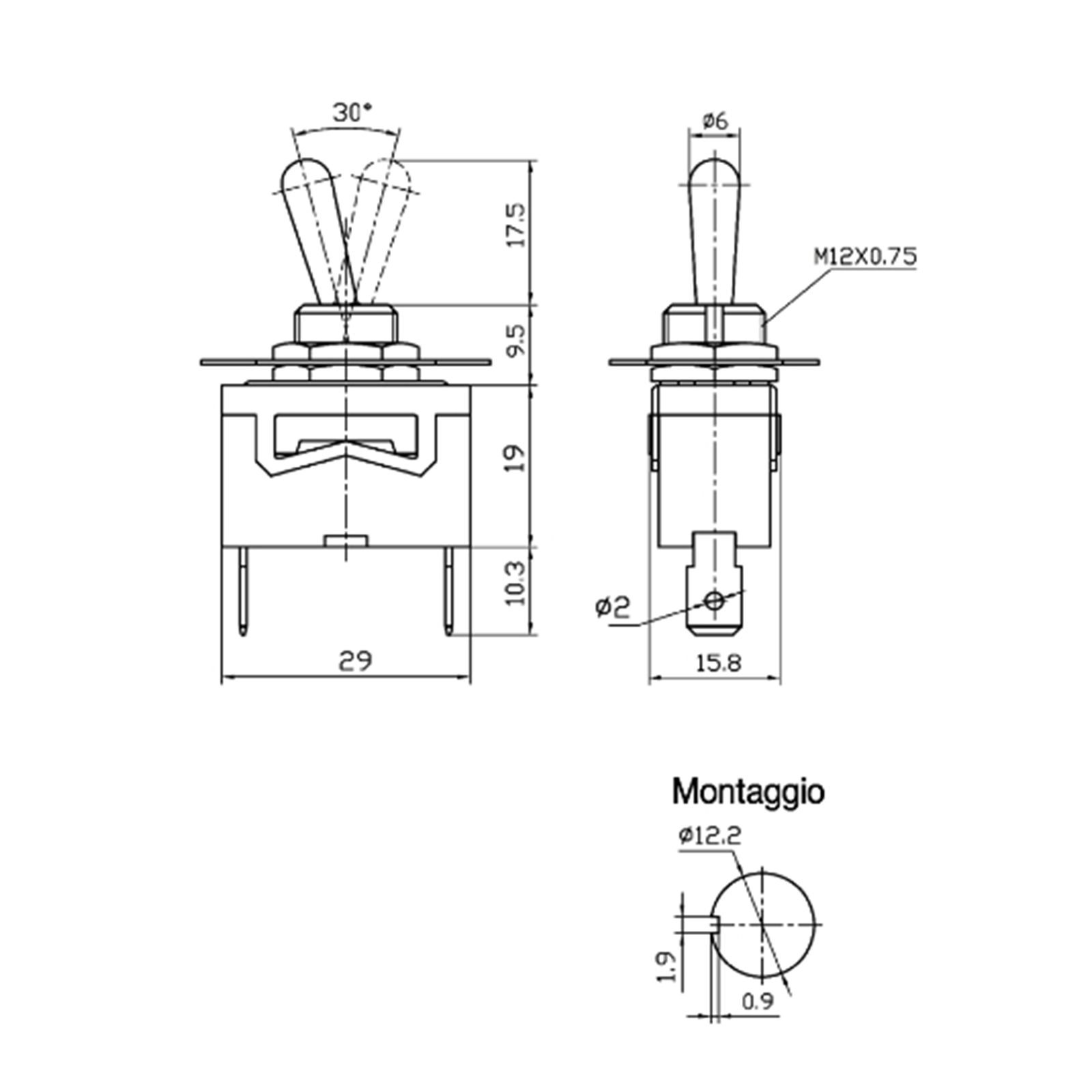 Deviatore a Leva Miniatura Unipolare ON-OFF-ON
