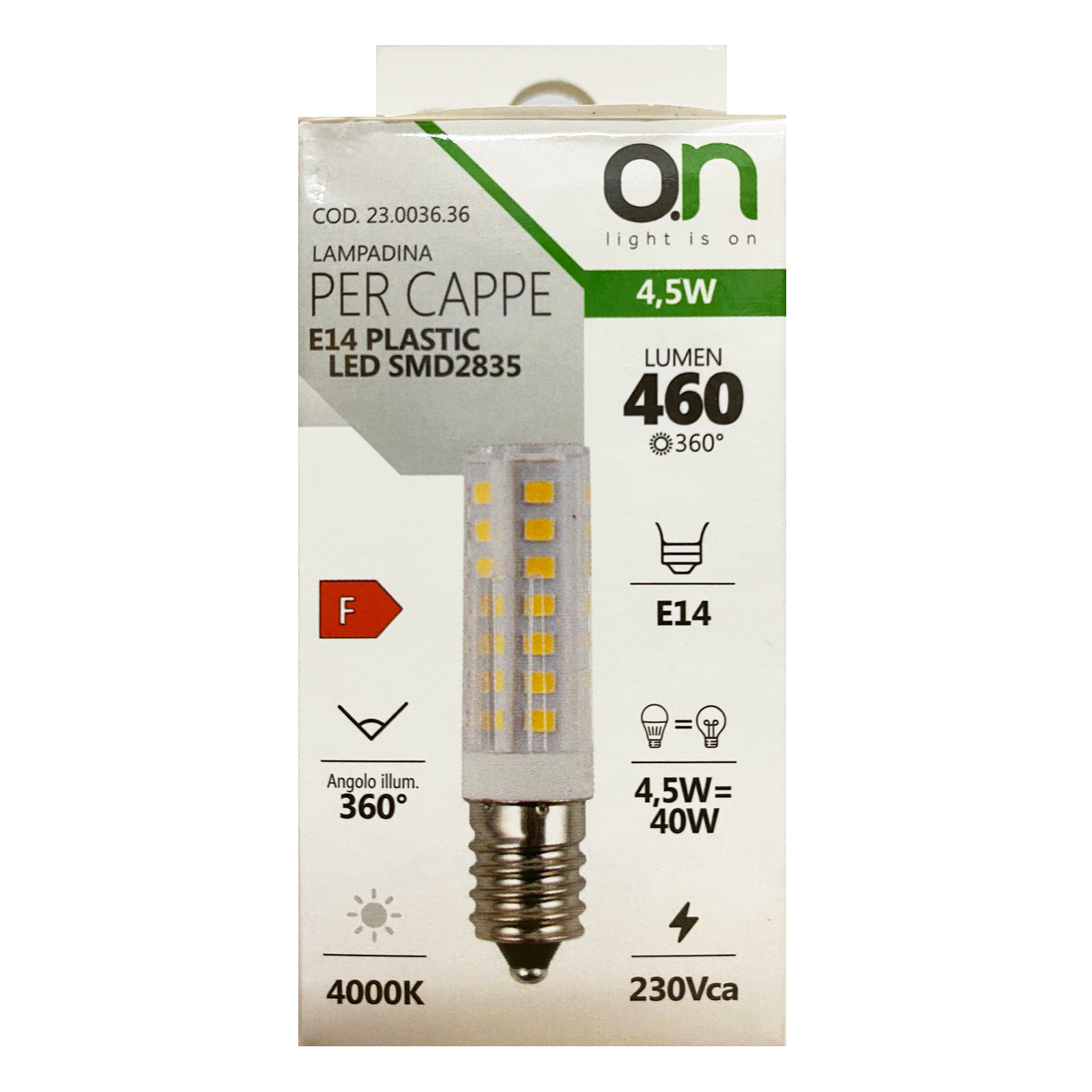 LAMPADINA LED PER CAPPE E14 4,5W LUCE NATURALE 4000 K