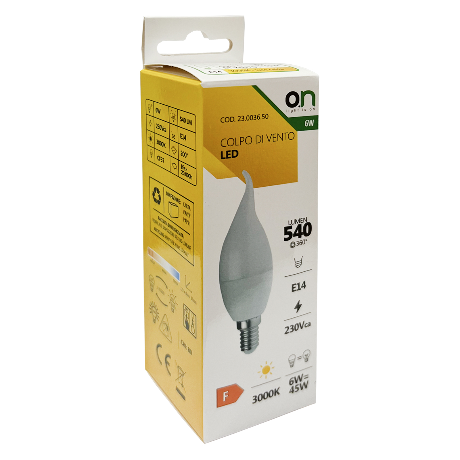 Lampadina LED Colpo Di Vento CF37 E14 6W Luce Calda 3000°K