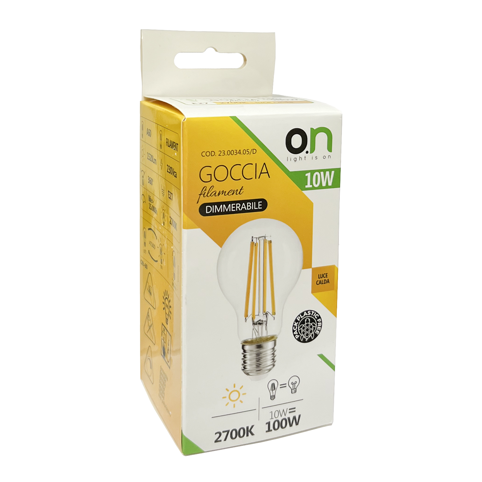 Lampadina LED Filamento Goccia A60 E27 10W Luce Calda 2700°K Dimmerabile